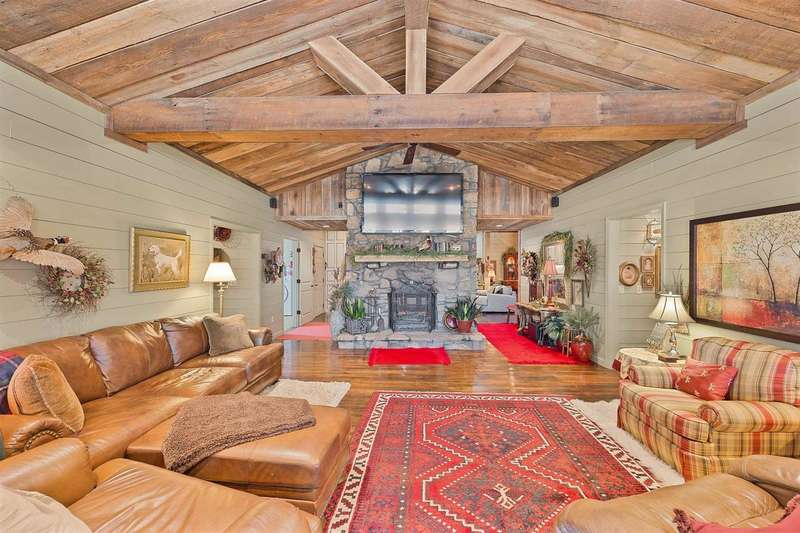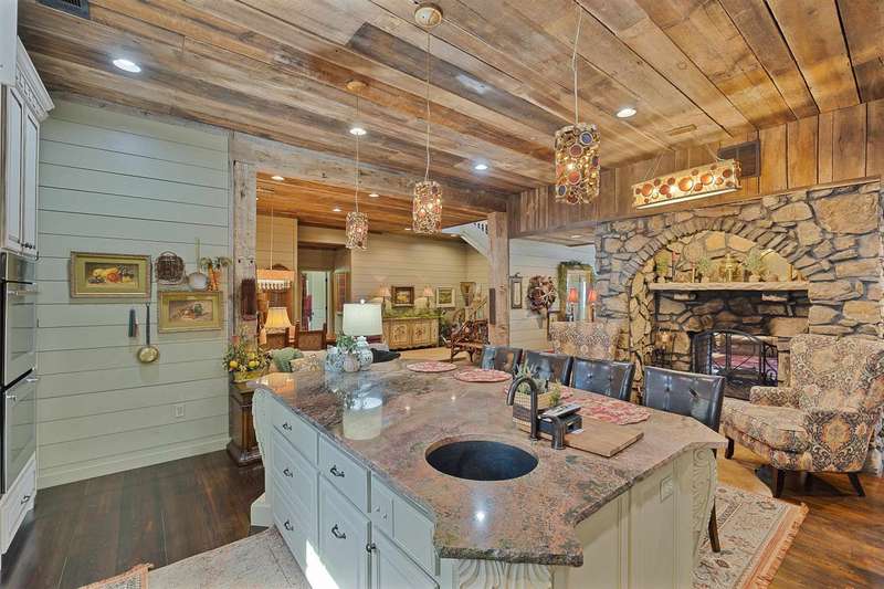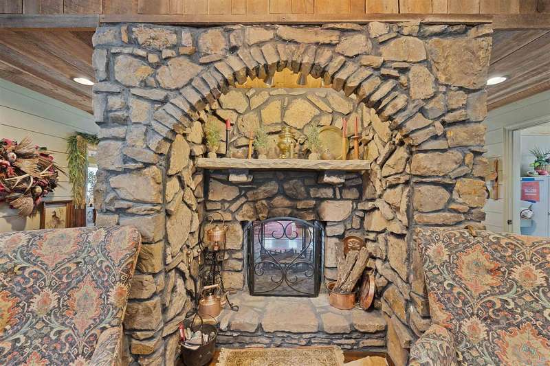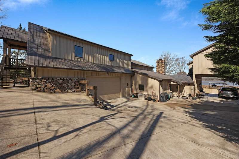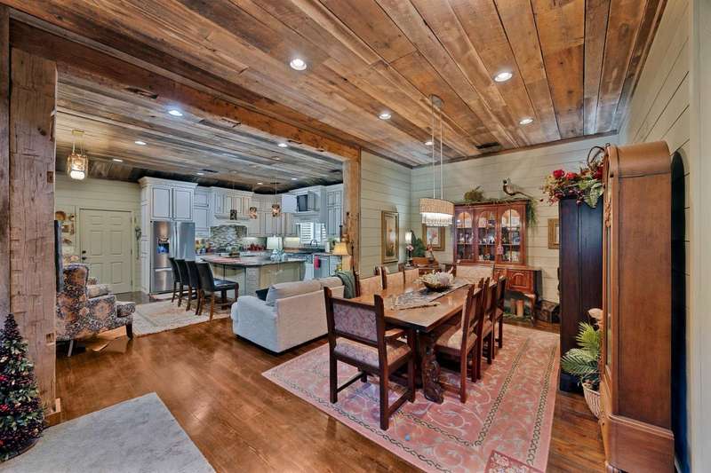 Spectacular Water Front Estate. Discover Luxury & functionality in this stunning Water Front Home, offering 8 Bdrms, 7.5 Ba across an expansive 6000 sq ft of living space. Designed for both comfort and entertainment. This property is a rare find w/ breathtaking views throughout. Primary & second Bdrm conveniently located on the main level. Spacious Kitchen, w/a Large Island, Jenn-Air Gas cooktop, double oven, built in microwave, custom Cabinetry, double sided Fireplace connecting the Kitchen & Living Rm. Beautiful Dinning area. Heart of Pine flooring & reclaimed barn board ceiling adding warmth & Character. Upper Level, Guest Suite 1, offers 2 Bdrm, 2 Ba Living & breakfast area & a Private entrance. Suite 2, offers 2 Bdrm, 1 Ba. Living & Kitchenette. Also a screened Balcony W/Lake views.. Suite 3, offers 2 Bdrm, 1 Ba. Living & Kitchenette. Oversized garage w/full Bath perfect for kids coming off the Lake, Washer/Dryer, & Storm Shelter. Covered Boat Dock W/3 Lifts, private Boat Ramp.