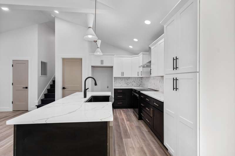 PRICE IMPROVEMENT: Welcome to this beautifully reimagined 3-bedroom, 3 bath single-family home in the heart of Cleveland. View the Property Tour: Nearly every inch has been thoughtfully remodeled from brand new underground utilities, wiring and fiber-optic internet to a full plumbing overhaul and roof, windows, water heater and appliances. Inside soaring 14-foot vaulted ceilings with custom beams, opening the kitchen, living room and dining area, anchored sleek, modern flat-faced fireplace rising 12 feet. The gourmet kitchen boasts a large island with quartz countertops and a custom marble backsplash, while the sun-filled bonus room flows seamlessly onto a walk-out deck framed by custom cable railings. Retreat to the primary suite's private balcony - complete with cable wiring - or unwind in the spa-inspired bathrooms, each finished with high-end fixtures and bespoke tile work. Rich board-and-batten siding, custom wood columns and unique wood cladding at both entrances lend undeniable curb appeal, and the finished walk-out basement even features a tile-rain shower. All this in a prime, walkable location-just steps from the school, greenway and shopping - at 2,145 sq ft of refined living for below $400,000.