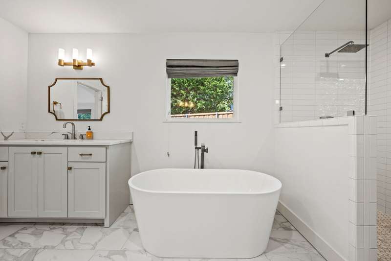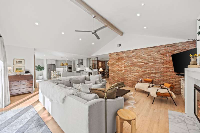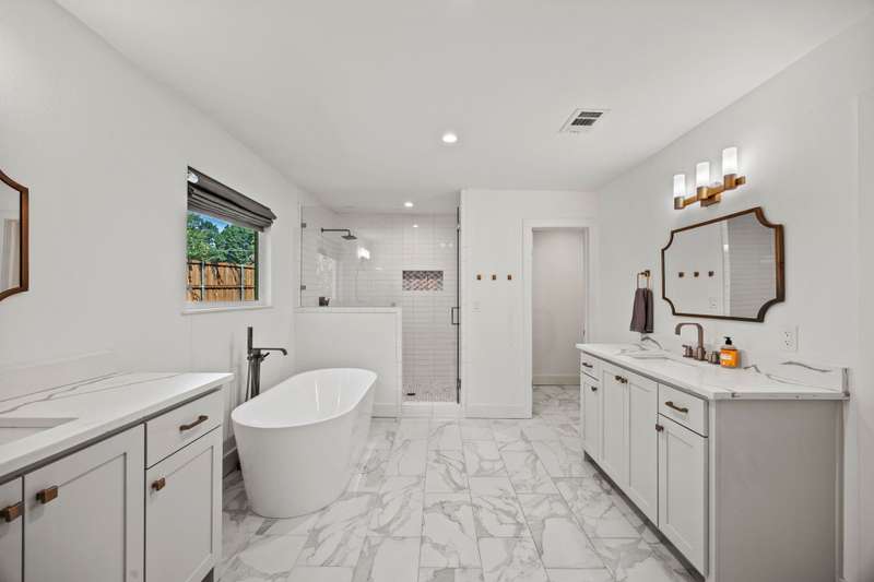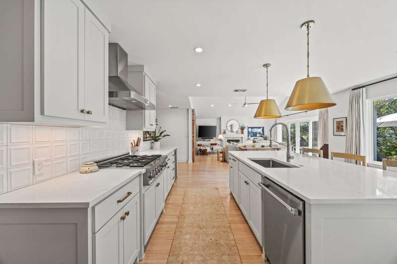 Gorgeous 4 bedroom, 4 full bath updated home in Ridgeway Park on an oversized creek lot with breathtaking views. Open floor plan features vaulted ceilings, floor-to-ceiling windows, original exposed brick and fireplace. The designer kitchen offers quartz countertops, high-end appliances, and an adjacent mudroom and utility room. White-washed hardwoods, designer hardware, modern light fixtures, and abundant light throughout. The home also has an insulated crawlspace with dehumidifiers adding efficiency. Unwind on the back deck overlooking the serene back yard and peaceful creek making every day feel like a retreat. Walk to the Ridgewood Park recreation center with playground, splash pad, tennis, pickleball, and basketball courts. Close proximity to White Rock Lake, restaurants and shopping, trails, and so much more!
