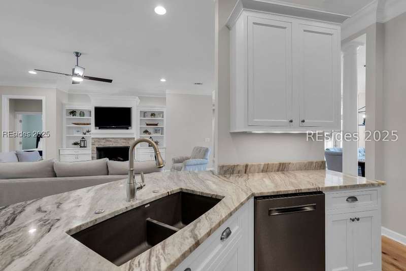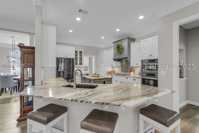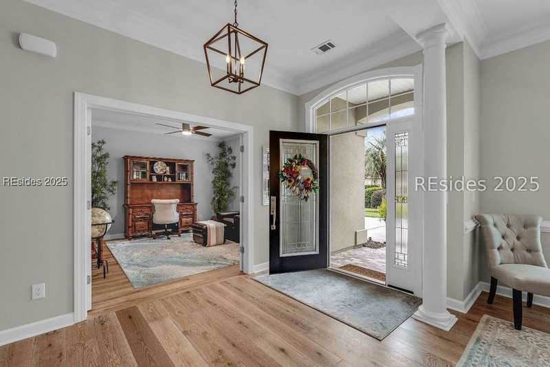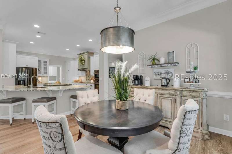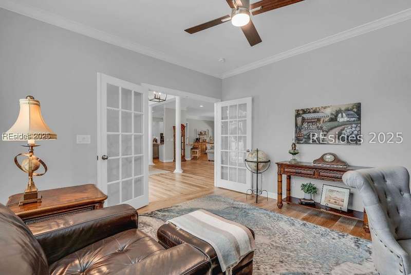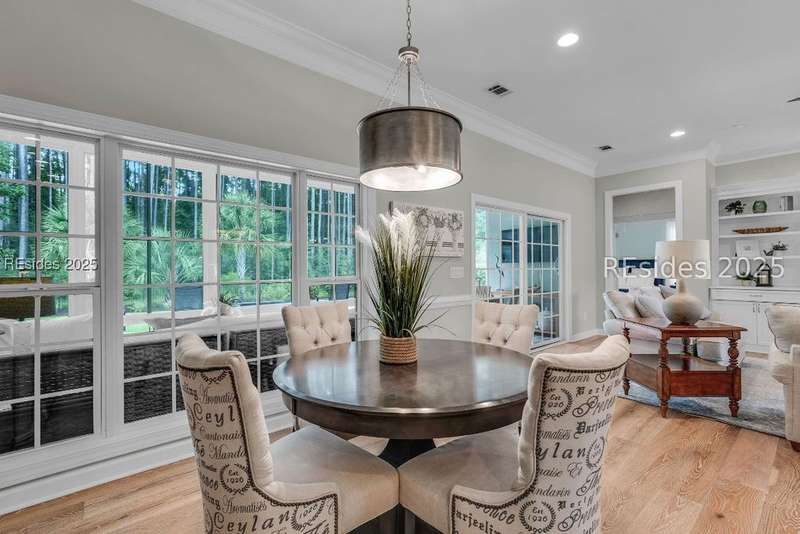 Beautifully updated Chartwell model in desirable Baynard Park. This impeccably maintained home welcomes you with a landscaped yard and beveled-glass entry. Light-filled, open-concept living with crown molding and wood floors throughout the main level. Dining room and French-doored office/den at the front, flowing into a family room with gas fireplace and custom built-ins. Chefs kitchen features 42" cabinets with soft-close doors and above and below cabinet lighting, pull-outs, granite counters, large island, tile backsplash, counter height seating, breakfast nook, and high-end appliances including a 5-burner cooktop with custom hood and built-in convection oven/microwave. Primary suite offers raised vanities, tiled shower, soaking tub, tile flooring, and custom walk-in closet. Two guest rooms share a full bath. A convenient half bath located off the family room. Bonus room above garage is perfect for a 4th bedroom or flex space. Enjoy the screened porch with vinyl insets, tiled patio, large, fenced yard and private nature preserve views. Oversized 2-car+ garage with storage and utility sink completes this exceptional home.