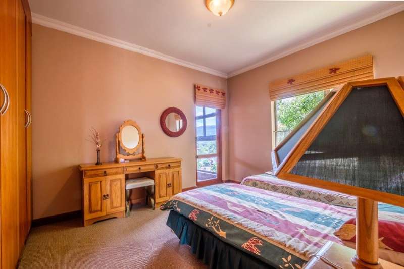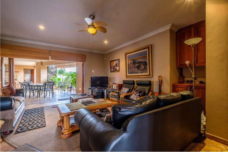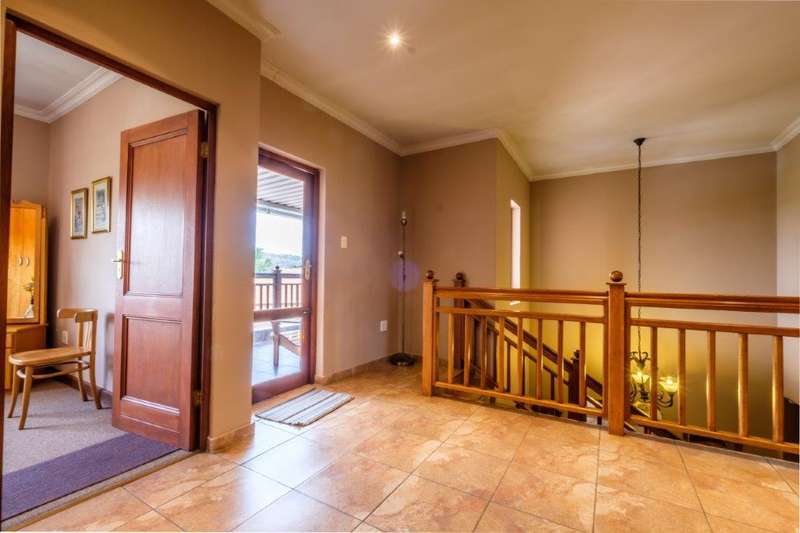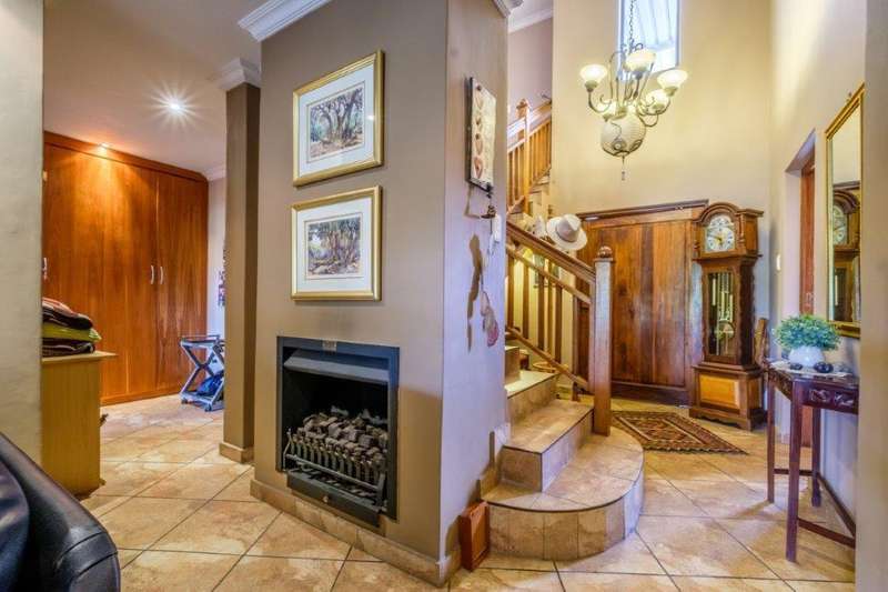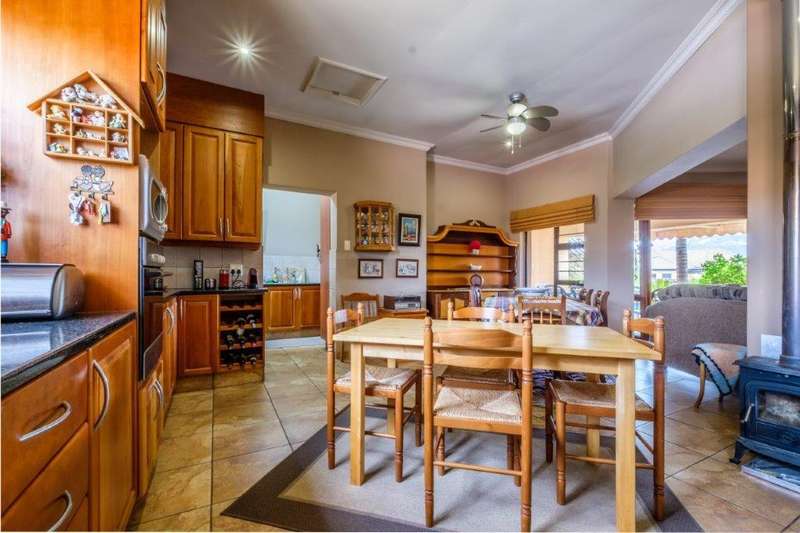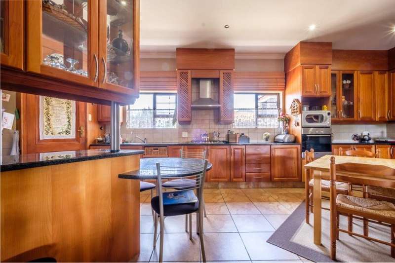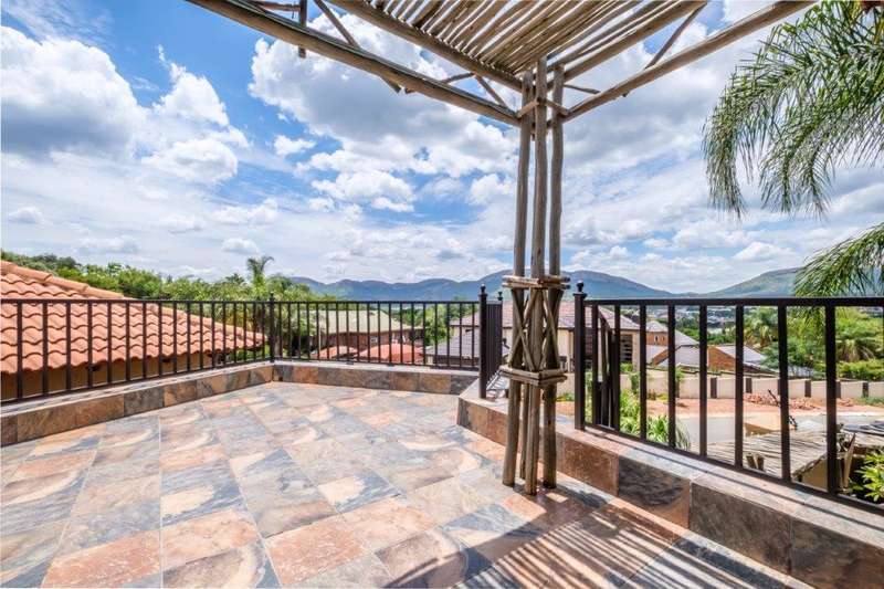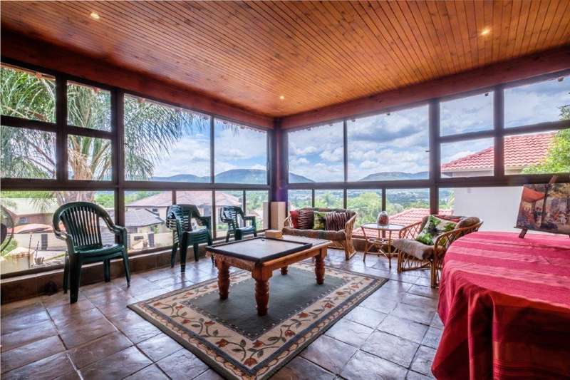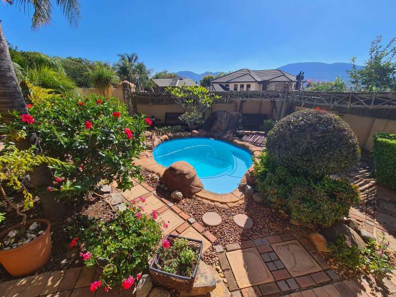 COMFORTABLE SPACIOUS FAMILY HOME IN A SECURE ESTATE This comfortable, spacious, secure family home set in a Cul-de-Sac within an upmarket security complex. Open plan luxury kitchen with pantry and scullery. Open plan living / dining room area that flows to the outside covered patio with a built in braai overlooking the established garden and rock pool. 4 Bedrooms - The main bedroom with en suite bathroom is downstairs. Bedroom 2-4 with a full bathroom is located upstairs. Bedroom 4 is a large bedroom with a kitchenette opening onto a covered patio with a gas braai and beautiful mountain views. All upstairs living/entertainment areas open up onto this covered patio. Separate on this stand is a 100sqm workshop (with small office) next to a huge carport big enough for 4 cars or extra working space. 2 Double garages.