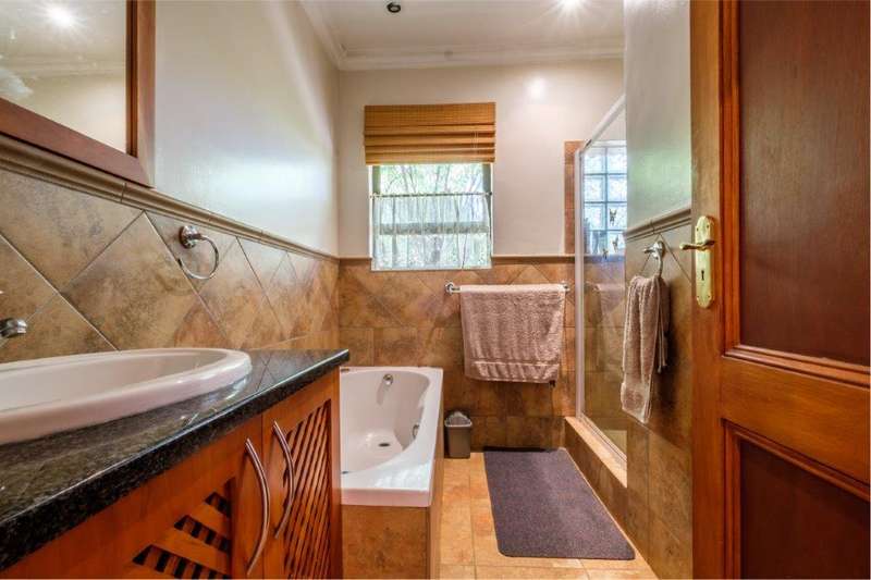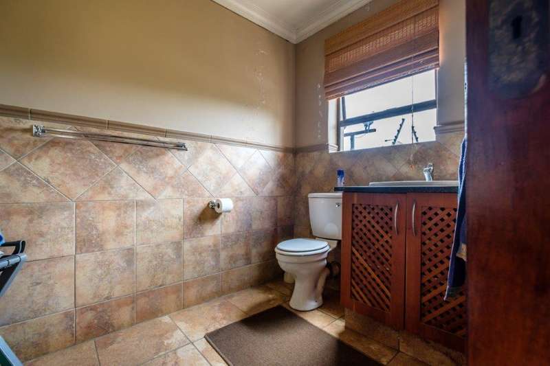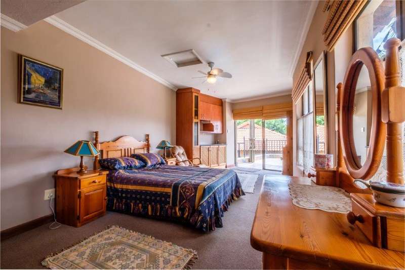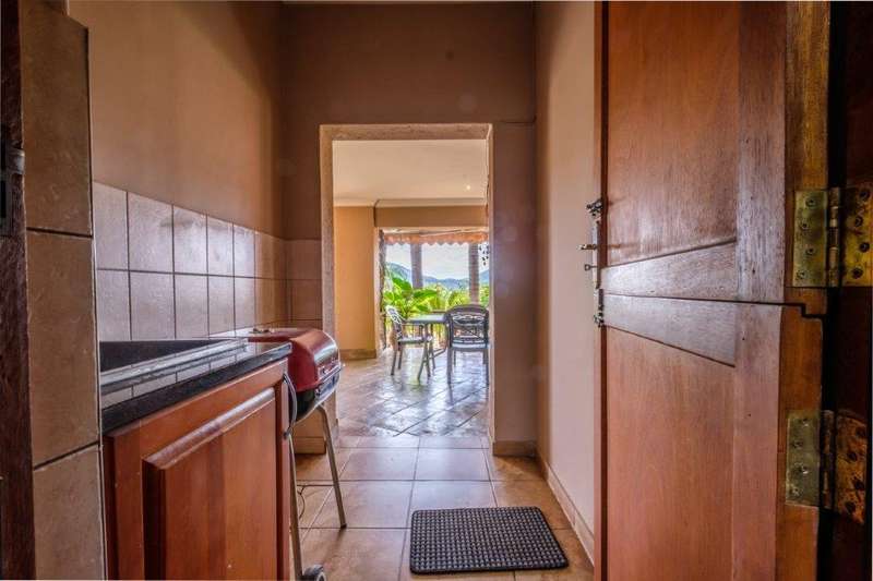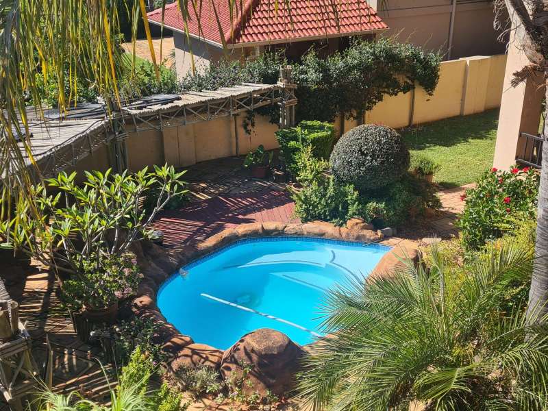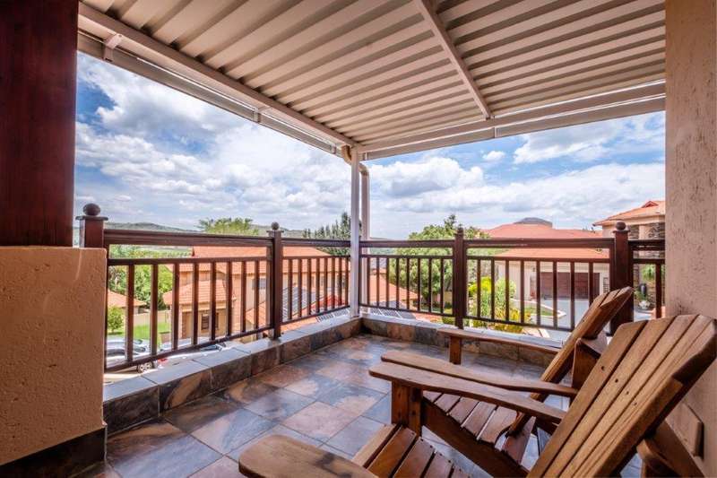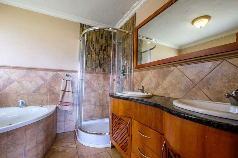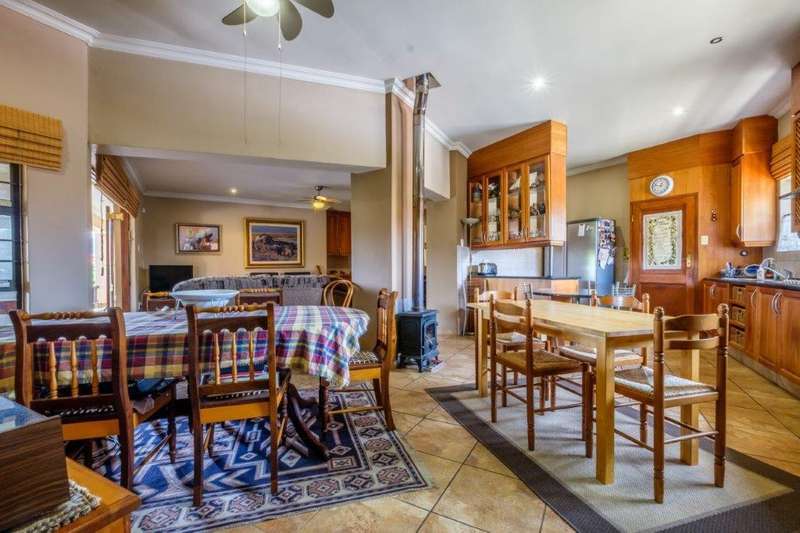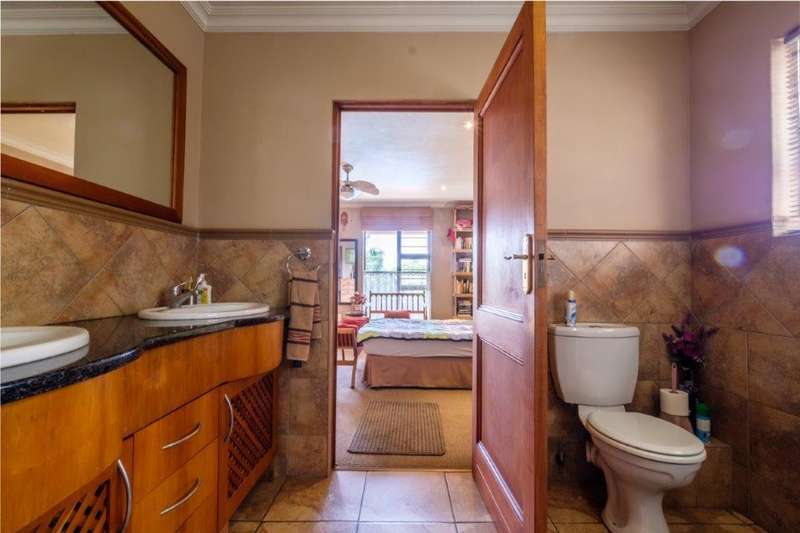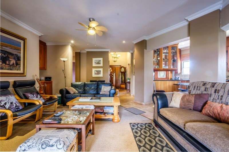 COMFORTABLE SPACIOUS FAMILY HOME IN A SECURE ESTATE This comfortable, spacious, secure family home set in a Cul-de-Sac within an upmarket security complex. Open plan luxury kitchen with pantry and scullery. Open plan living / dining room area that flows to the outside covered patio with a built in braai overlooking the established garden and rock pool. 4 Bedrooms - The main bedroom with en suite bathroom is downstairs. Bedroom 2-4 with a full bathroom is located upstairs. Bedroom 4 is a large bedroom with a kitchenette opening onto a covered patio with a gas braai and beautiful mountain views. All upstairs living/entertainment areas open up onto this covered patio. Separate on this stand is a 100sqm workshop (with small office) next to a huge carport big enough for 4 cars or extra working space. 2 Double garages.