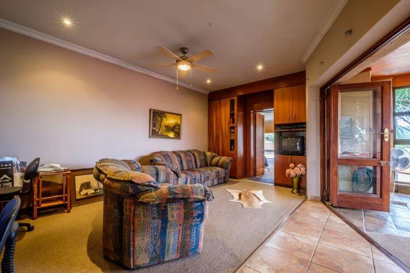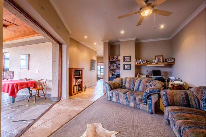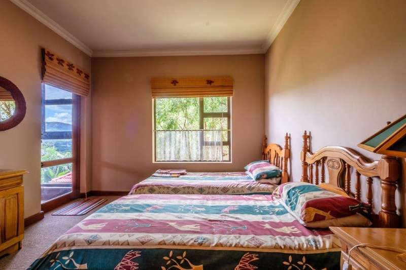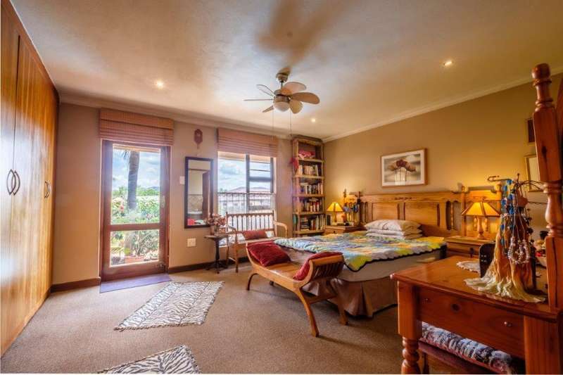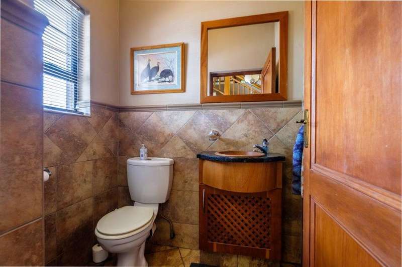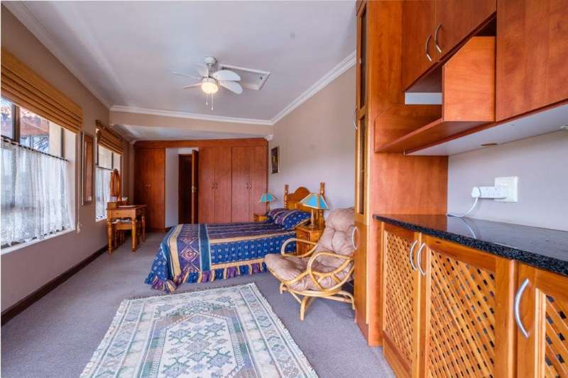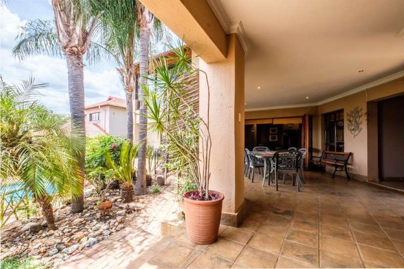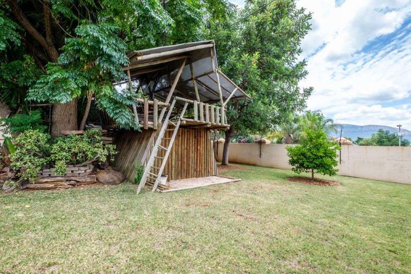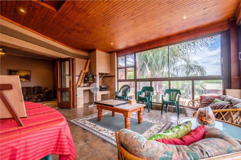 COMFORTABLE SPACIOUS FAMILY HOME IN A SECURE ESTATE This comfortable, spacious, secure family home set in a Cul-de-Sac within an upmarket security complex. Open plan luxury kitchen with pantry and scullery. Open plan living / dining room area that flows to the outside covered patio with a built in braai overlooking the established garden and rock pool. 4 Bedrooms - The main bedroom with en suite bathroom is downstairs. Bedroom 2-4 with a full bathroom is located upstairs. Bedroom 4 is a large bedroom with a kitchenette opening onto a covered patio with a gas braai and beautiful mountain views. All upstairs living/entertainment areas open up onto this covered patio. Separate on this stand is a 100sqm workshop (with small office) next to a huge carport big enough for 4 cars or extra working space. 2 Double garages.
