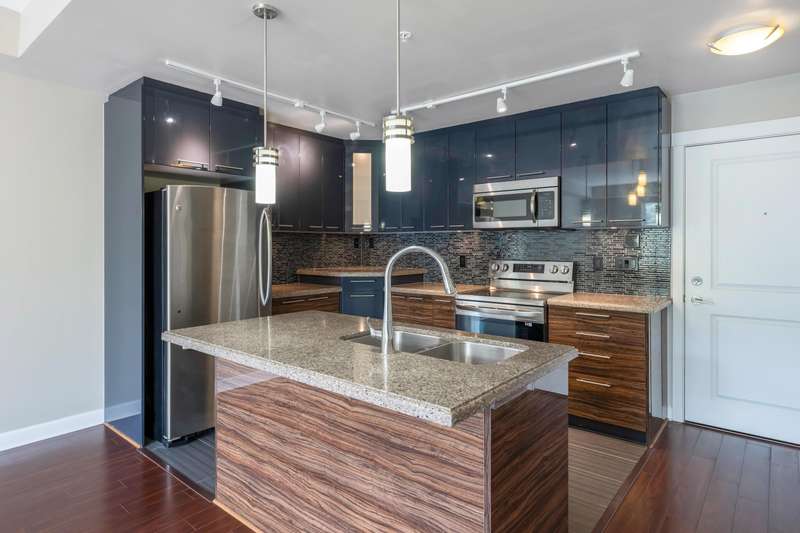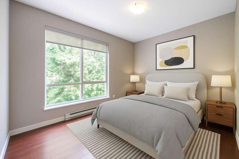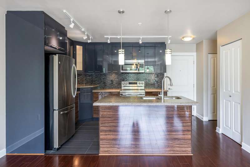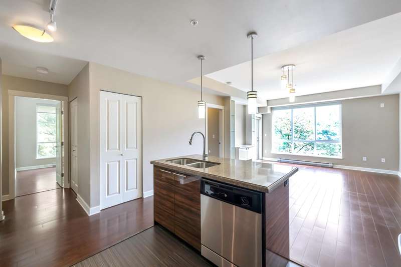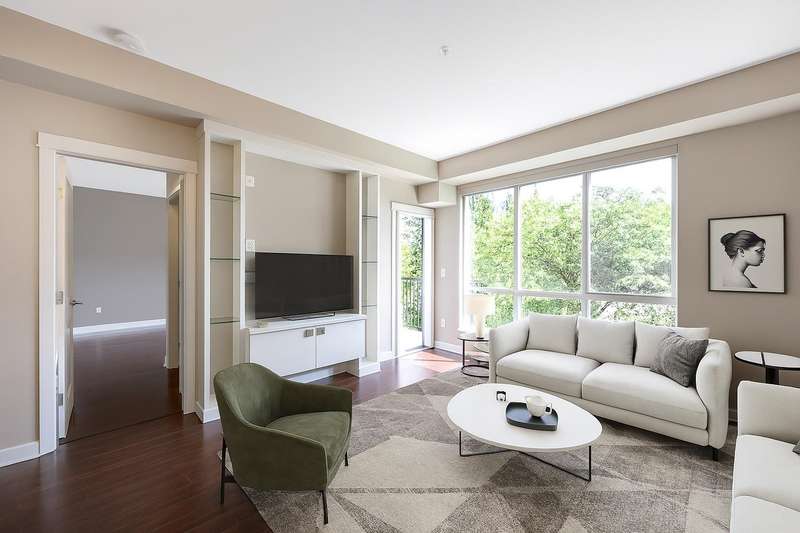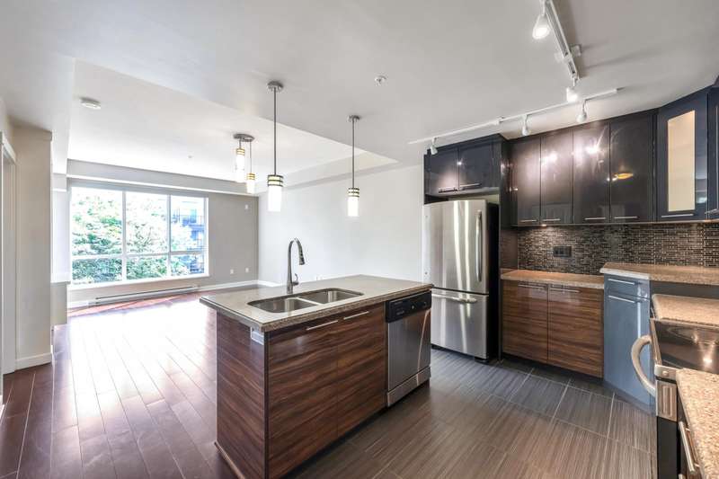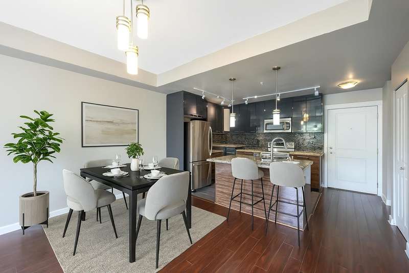 Welcome to this exquisite 3 bedroom, 2 bathroom corner, Southeast exposed suite in the upscale Luxor building. Boasting nearly 9 ft ceilings and oversized windows fill the space with natural light. Enjoy open-concept living with spacious living/dining areas & a gourmet kitchen featuring quartz counters, stainless steel appliances, an island with double undermount sinks and glass tile backsplash. The primary bedroom offers a walk-in closet and ensuite. Includes in-suite laundry, 2 secured parking stalls, storage locker, bike storage and a large covered balcony facing greenspace. Residents enjoy “The Luxor Club” amenities: gym, lounge with billiards, guest suite and 2 elevators. Steps to transit, Safeway, cafes, Watershed Park, Scottsdale Mall and easy access to Alex Fraser Bridge & Hwy 99.