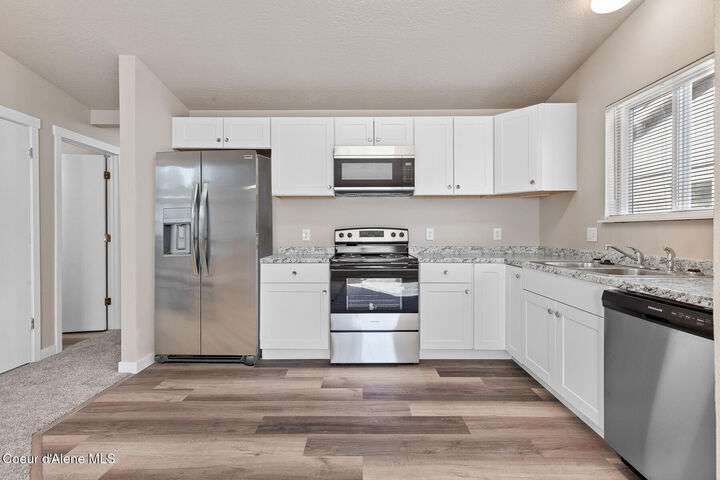 Excellent Investment Opportunity in Post Falls! This 2,980 sq. ft. tri-plex offers two spacious 3-bedroom, 2-bath units and a 2-bedroom, 2-bath unit, each with open floor plan, large master bedroom suite, a private fenced backyard, and a 1-car garage. Unit C was completely remodeled in 2025 with a brand-new kitchen featuring new cabinets, countertops, stainless steel appliances, fresh interior paint, new flooring including luxury vinyl plank flooring, carpet and water heater. Newer furnace in 2019. Unit B also includes an updated water heater (2017) and newer paint and flooring(2021). Unit A has updated linoleum and paint(2020) and new water heater(2015). Two units are currently leased, while the beautifully remodeled unit is vacant—perfect for a new tenant or ideal for owner occupancy. Situated on a generous .28-acre lot close to schools, shopping, and parks. This property is a turn-key, income-producing investment you don't want to miss!