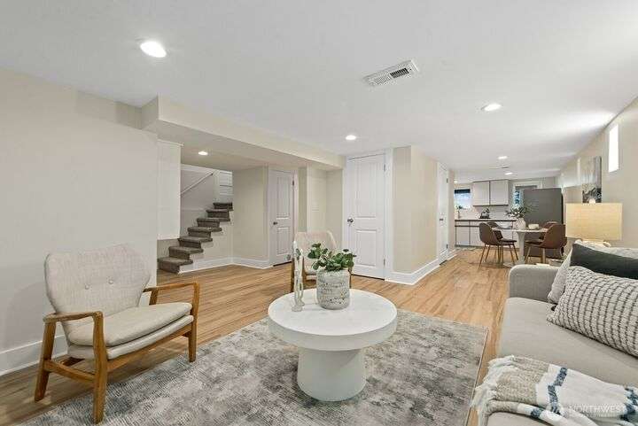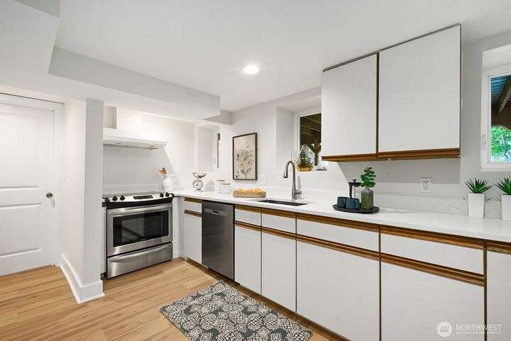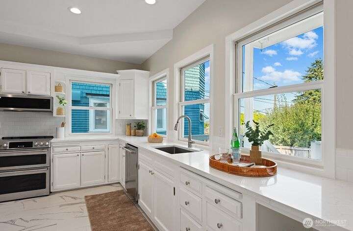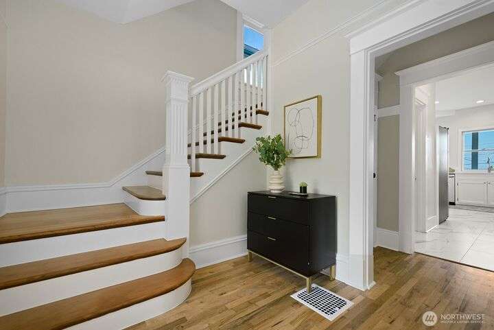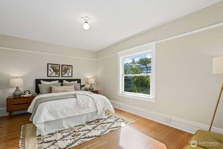 Welcome to Seattle Point Of View- A newly updated Classic Craftsman. This three bedroom, four bathroom 2,400sf residence on one of Capitol Hill's most sought after streets enjoys easterly lake and mountain views. Just completed updates include: refinished wood floors, new interior paint throughout & new quartz countertops and appliances. Rare primary ensuite with vaulted ceilings, walk in closet and private deck with additional two bedrooms and full bath on the upper level. The basement is refinished MIL apartment/family room with full kitchen, bath and laundry. Close to shopping, dining & just one block to Volunteer Park.