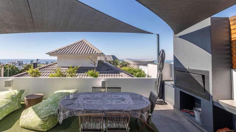 FIRST TIME ON SHOW - please confirm your viewing appointment This modern open-plan home invites you to live with the outdoors and the sea as your backdrop. The living areas open to a sun-drenched deck via sliding doors, creating an effortless flow of light, air, and space. Street Level: Arrive through a welcoming walkway into the heart of the home. The open-plan living and dining area, designed for easy entertaining, is flanked by a sleek kitchen. Glass doors extend the space onto an outdoor braai terrace, inviting you to spend evenings dining under the stars. Top Level: An elevated splash pool and entertainment deck offer a private retreat, perfect for lazy afternoons or sunset gatherings with friends. Lower Level: Downstairs, the main bedroom suite opens onto a small courtyard, while two additional bedrooms share a stylish bathroom. A study nook completes the level, ideal for working from home or for quiet moments of reflection. Bathed in natural light and alive with fresh air, this home captures the essence of relaxed, modern living. Size: Street level and lower level living areas - 172 sqm + 30sqm outside deck Entertainment area on the top level - 72 sqm Storeroom - 15sqm Carport - 30sqm Location: Perfectly positioned at the foot of Signal Hill, and just moments from Green Point Stadium, the V&A Waterfront, and Cape Town?ÇÖs vibrant CBD, this home offers the ultimate City lifestyle as a quiet retreat. You?ÇÖll love the outdoor decks and rooftop pool with breathtaking views of the sea, stadium, and Green Point Park?Çöall of this within walking distance of trendy coffee shops and some of Cape Town?ÇÖs best restaurants. A designer lock-up-and-go for those who value style, convenience, and the pulse of city living. A perfect Cape Town setting - convenience, and the pulse of city living. A perfect Cape Town setting.
