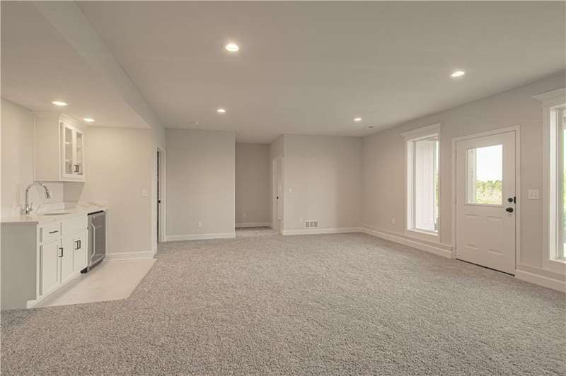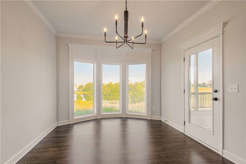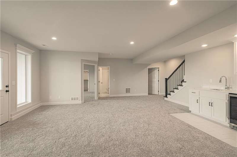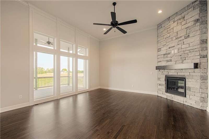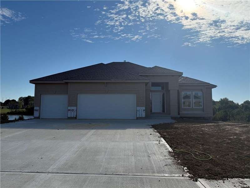 The NOAH by Robertson Construction! Positioned on a PREMIUM LAKE-BACKED LOT offering an outstanding view! This Stunning Reverse 1.5-Story offers 2822 sq. ft. with a beautifully designed living space and exceptional detail throughout! Floor-to-Ceiling windows overlook the backyard creating a seamless connection between indoor and outdoor living! The open concept design features a Corner Stone Fireplace, Real Hardwood Floors, Private Master Suite with a Luxurious Bath, Walk-in Shower, Huge Soaker Tub and access to the Laundry Room which is complete with a utility sink. Bedroom 2 is also on this level, ideal as a guest room or home office and 2nd Full Bath. The gourmet Kitchen is well designed with Custom Built Cabinets, Solid Surface Countertops, and Walk-in Pantry. The oversized Deck has easy access from both the Breakfast Room and Master Suite. A Finished Lower Level WALKOUT offers more Floor to Ceiling Windows, WET BAR with Beverage Fridge, 2 more Bedrooms, 2 Baths, Family Room and a GENEROUS AMOUNT OF STORAGE in 2 STORAGE ROOMS. Patio at the Walkout offers another great view leading to the backyard.