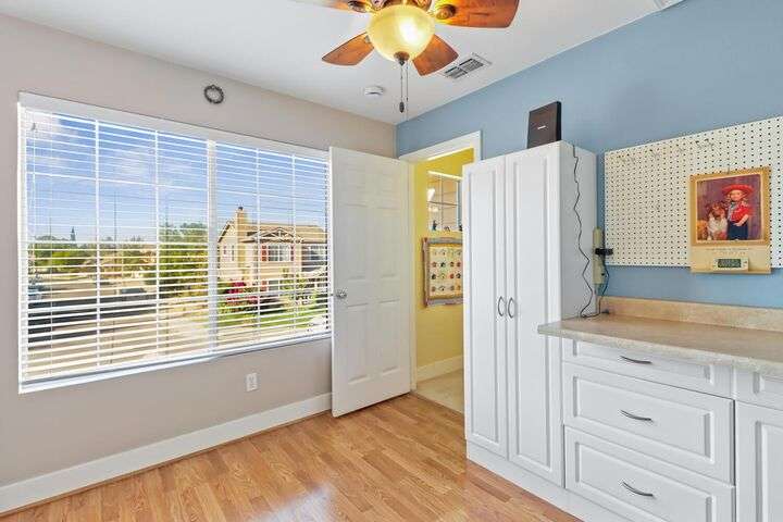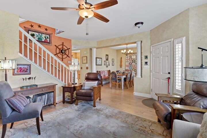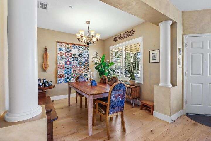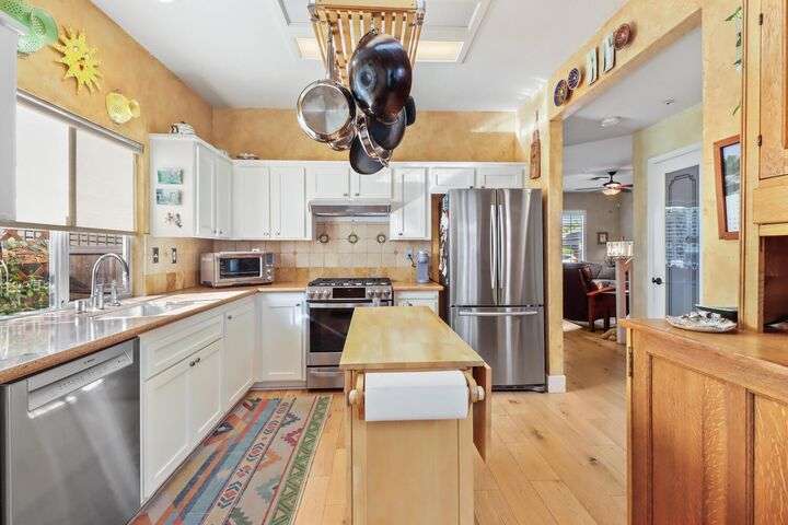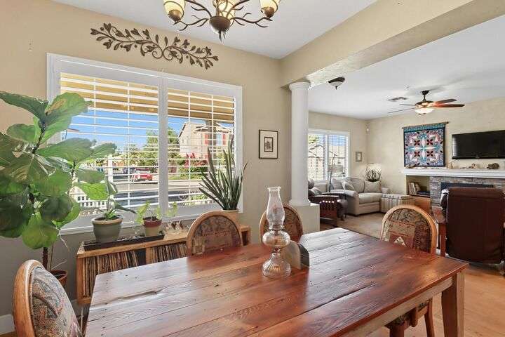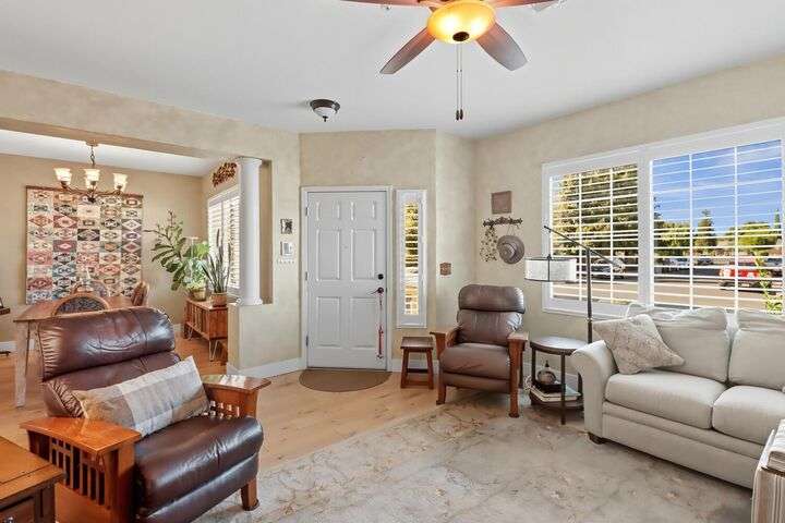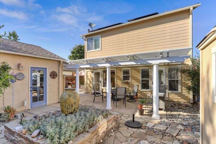If a move-in ready home is what you're looking for, this is the one for you! So many upgrades and everything very well-maintained resulting in a home that's ready to be enjoyed the minute you move in. Full of color and charm, 976 Huston Circle welcomes you the moment you enter! Engineered wood flooring downstairs (2019), owned solar with battery storage (2023), electric vehicle charging port (2024), HVAC replaced (2019), new dishwasher and water heater (2024), new stove (2022) gas log fireplace (2019),and roof (2015). The sunny backyard exudes charm with a covered patio and various points of interest. The finished detached garage with epoxy floors and mini-split for heat/air currently serves as a quilting studio but could be be used for many other uses including a garage or storage area. This happy home awaits its lucky new owner!