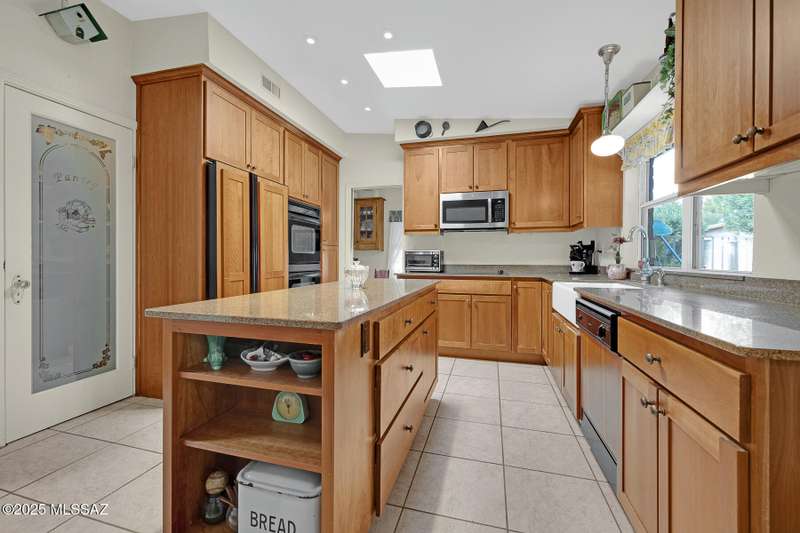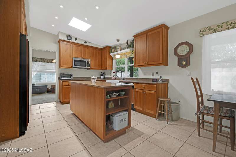 Location/Location Well cared for 4BR 2BA in highly desirable Vista Del Rio neighborhood. Large open living rm with cozy corner gas beehive fireplace; great rm opens to kitchen w additional dining area; Updated kitchen with large island; lot of extra cabinets; walk-in pantry; skylights bring in the light; hi ceilings; recessed lighting, granite counter tops; white farmers sink; overlooks picture window to side covered patio. Just N a few short walk is the TV wash river walk park w swings & play tower. Walk your pets, jog or bike. This voluntary HOA is only $45 a yr. Halloween & Christmas is a joy. Lots of decorations; even a contest. Annual holiday hay rides. Streets recently been repaved. Be sure to ck out the Vista del rio cultural park it's an archeological site blessed by the Tohono