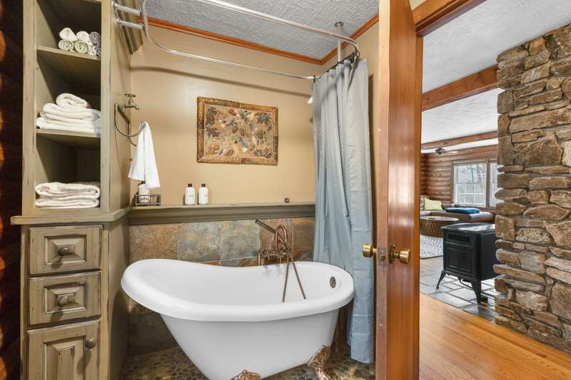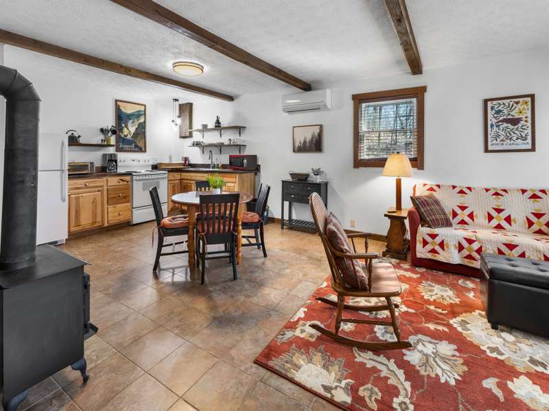 Nestled in a serene area of Lake Junaluska, this charming log and stone cabin offers a peaceful retreat with unique versatility. The full log 3bed/2bath main and upper levels of home feature open concept living and a large bedroom on the main. There are two guest bedrooms and a bath on the upper level. The stone clad ground level 1bed/1bath apartment is accessible by its own entrance or interior stairs ? ideal for both multi-generational living or as an income-producing rental. Recent upgrades include Mitsubishi mini split HVAC throughout, and a beautifully updated 2nd kitchen on the lower level. Included is an adjoining parcel that boasts an elevated, south-facing homesite with mtn and lake views?an ideal setting to build an additional cabin or your dream home. Lovingly maintained as both a family getaway and successful short-term rental, this property offers the opportunity for a turnkey purchase, with furnishings available for a move-in-ready or investment-ready mountain retreat.
