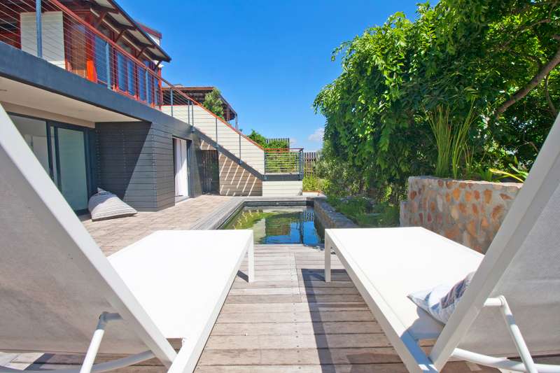 Perched on the crest of a hill in one of Scarborough’s most coveted locations, this home is a stunning fusion of elegance, thoughtful design, and breathtaking natural beauty. The main home boasts two spacious bedrooms with bespoke rare wood finishes, a luxurious main en-suite, and an open-plan dining, kitchen, and lounge area. This home backs onto Baskloof Nature Reserve where you can enjoy a cup of coffee in the morning or an evening Braai with friends. Seamlessly designed to maximize comfort and style, every space offers panoramic sea views, making this property truly one of a kind. The lower level features a fully self-contained one-bedroom apartment, ideal for guests, extended family, or rental opportunities. A 2nd bedroom can be partitioned off to accommodate guests. With sleek screed floors, double glazing, a feature fireplace, and its own kitchen, this space exudes modern charm. The apartment flows effortlessly onto a beautifully landscaped patio with an Eco pool, creating the perfect setting for entertaining or relaxing in harmony with the coastal surroundings. Whether you’re seeking a tranquil retreat or an enviable lifestyle, this property offers the best of Scarborough living. Extras include: Solar PV system with Tesla battery, ring main hot water, solar geyser, grey water system, CCTV, Smart home integration and much more. Contact us today to arrange a private viewing.