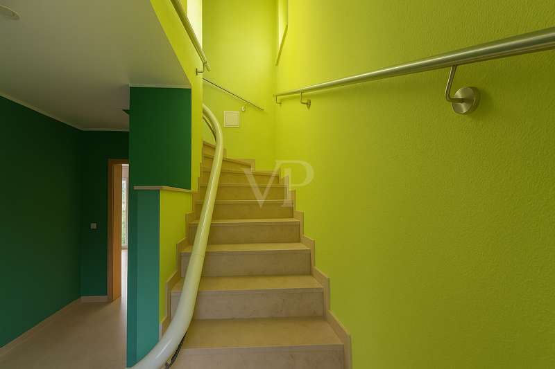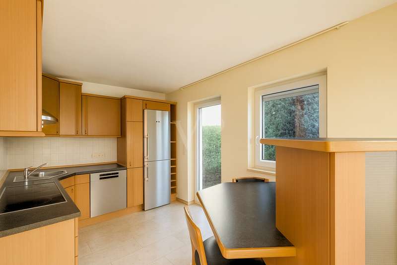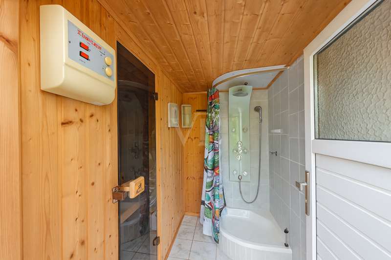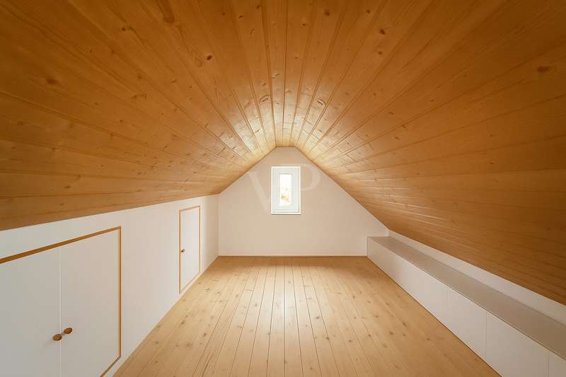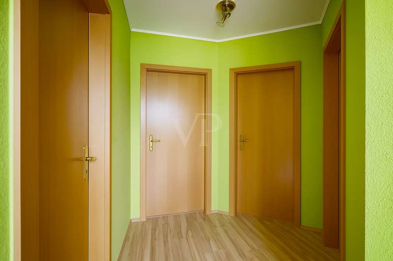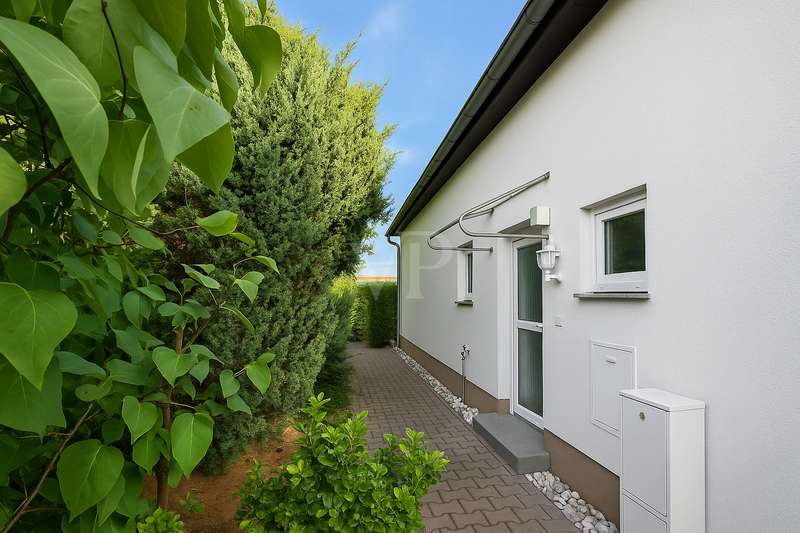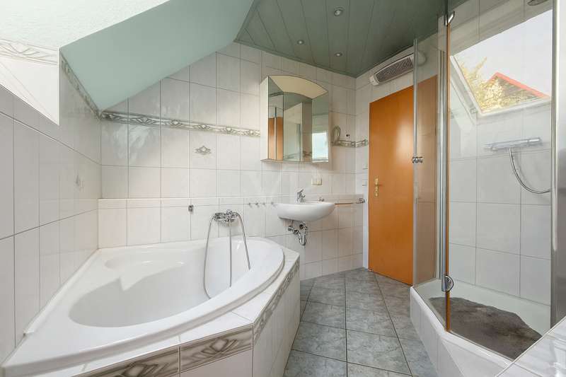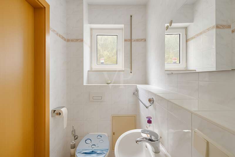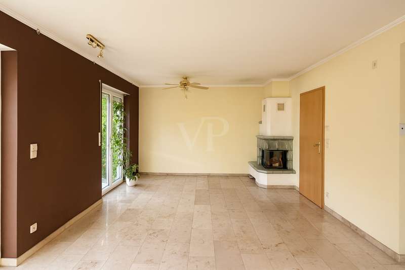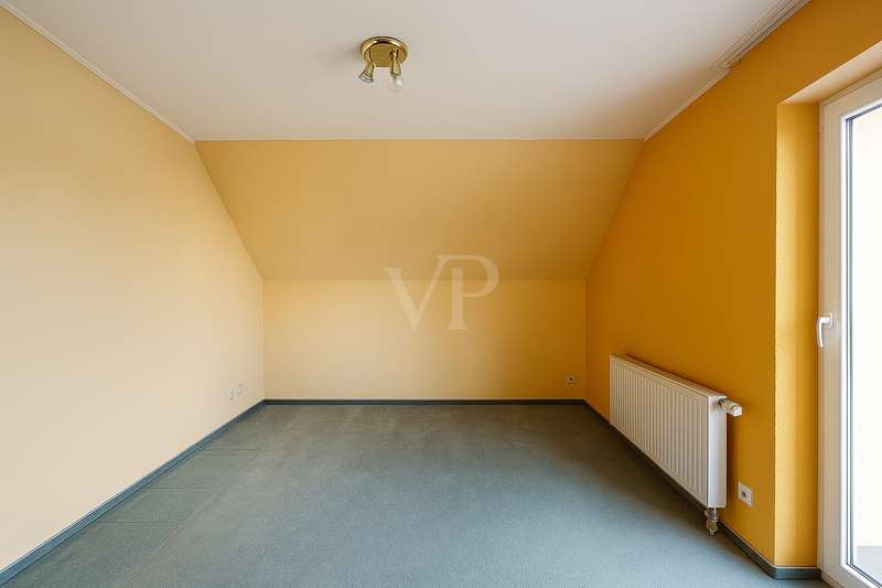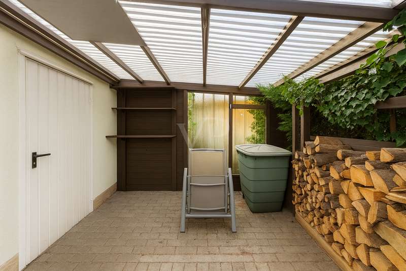 This attractive detached house in solid construction offers approx. 108 m² of living space on a plot of approx. 587 m² in the popular residential area "Am Staudamm" in Straußfurt. The quiet south-facing slope, proximity to the lake and extensive walking paths make it ideal for families, couples, home office users and nature lovers. On the first floor, the light-flooded living and dining area with an open kitchen concept, natural stone flooring made from easy-care Jura marble and pleasant underfloor heating is impressive. A fireplace makes for cozy hours. From here you have direct access to the terrace and the large garden. The terrace has electric shutters for sun protection and comfort. Also on the first floor is a guest WC with an additional washing machine connection, a practical utility room and a storage room. The upper floor comprises two bright bedrooms with access to a shared balcony and a further room that is ideal as a study or guest room. The spacious daylight bathroom is equipped with a corner bathtub, separate shower and floor-to-ceiling tiled walls. Windows in all sanitary rooms provide natural light and a pleasant indoor climate. A special highlight is the converted attic of around 47 m², which is accessible via the study. It offers a variety of uses - from a hobby room to an additional bedroom. The sealed roof provides lasting protection from the elements. There is a double garage on the property, currently divided into a garage and workshop, including cold and waste water connections. An integrated sauna with shower offers additional recreational value. Garden maintenance is made much easier by a ring irrigation system connected to a private well. The entire property is fenced in with an 80 cm high wire mesh fence and has a separate fence door. In addition to the landscaped area, the property also offers a well-tended lawn. The house is technically well equipped: The central gas boiler was renewed in 2024, and an air conditioning system in the bedroom ensures pleasant temperatures. Double-glazed windows and doors with blinds, tilt and turn fittings and electric shutters offer modern living comfort. The front door is made of plastic with safety glass, the boiler room door is fire-retardant. There is a leasehold contract for the property with the church chamber. The ground rent is currently around € 450.00 per year. The remaining term of the leasehold is 54 years. This provides an attractive alternative to the traditional purchase of land with clear financial advantages. Click here for the virtual tour: https://von-poll.com/tour/erfurt/aHOv