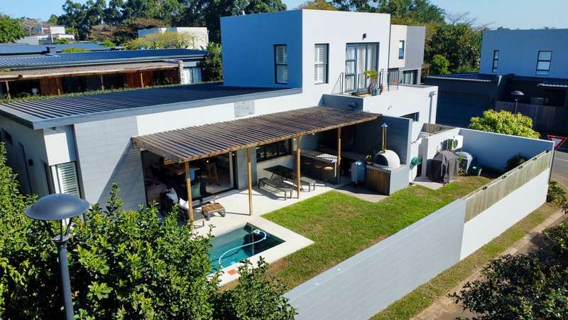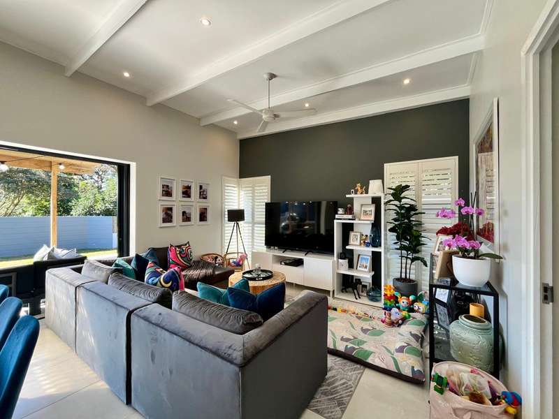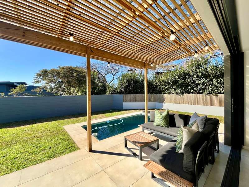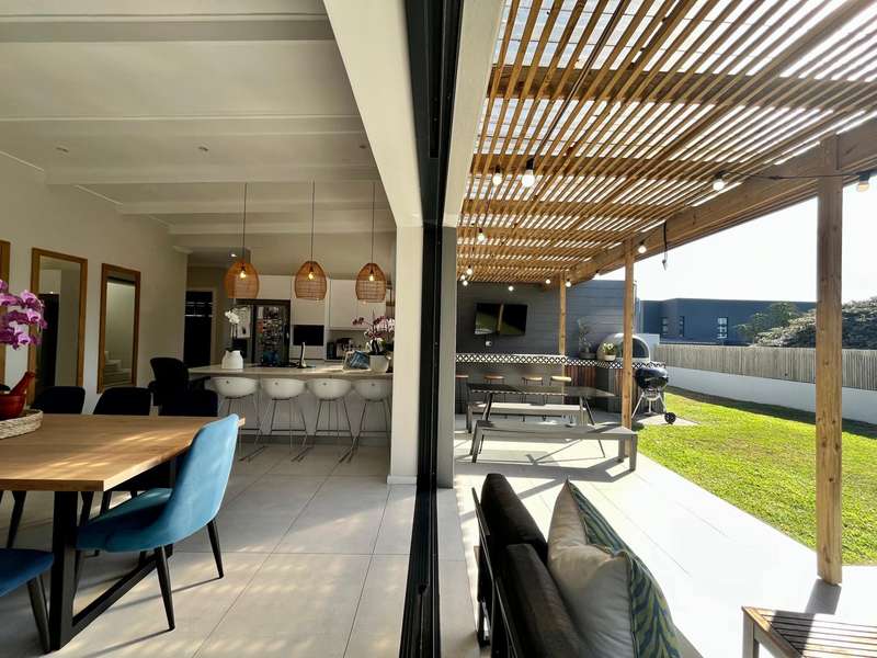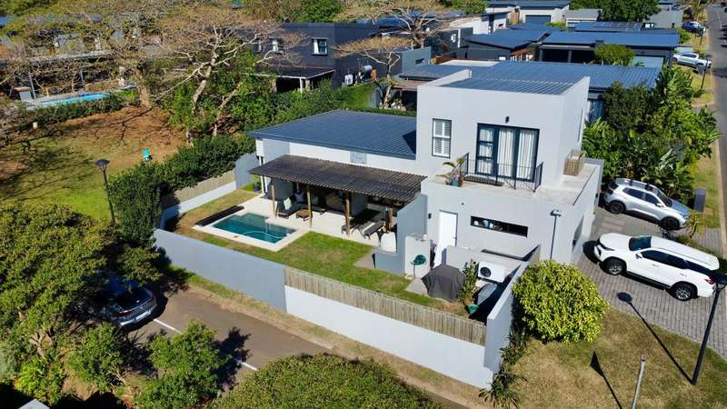 DUAL MANDATE - Discover modern family living in Ballito’s best-kept secret – Brooklyn Estate. This contemporary 4-bedroom home combines top-end finishes with carefully designed spaces that balance comfort, style, and functionality. The heart of the home features open-plan living areas that flow seamlessly onto the outdoor entertainment space, creating the quintessential North Coast lifestyle. Whether you’re hosting at the custom-built bar, firing up the pizza oven, or relaxing by the sparkling pool, this home is designed for both everyday family living and weekend entertaining. Downstairs offers three generous bedrooms and spacious living areas that open to a private garden overlooking the estate’s lush park – the perfect extension of your backyard where children can play freely. The upstairs level is dedicated to the luxurious master suite, complete with breathtaking inland sunset views, offering a peaceful retreat at the end of each day. Brooklyn Estate itself is a lifestyle destination, featuring a clubhouse, estate pool, braai facilities, and a multipurpose room for gatherings. Residents also enjoy their own private forest, ideal for kids to explore or for walking dogs. Pet-friendly, beautifully maintained, and centrally located near schools, shops, and medical facilities, Brooklyn offers the perfect balance of convenience, security, and family living.