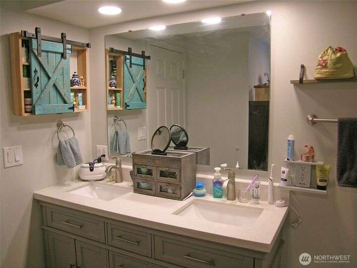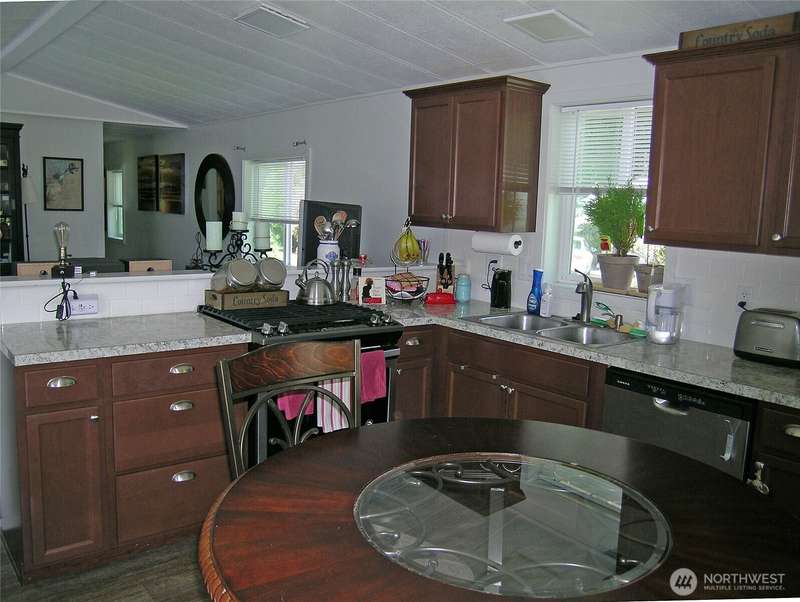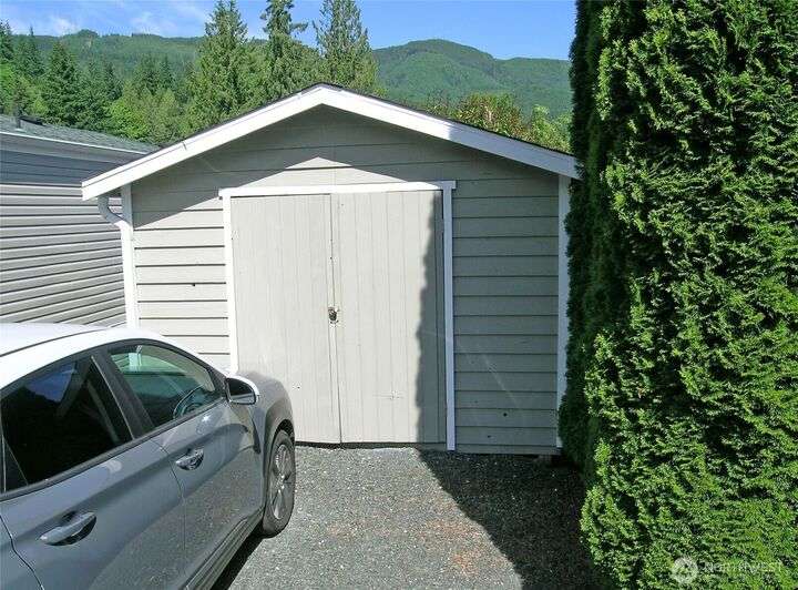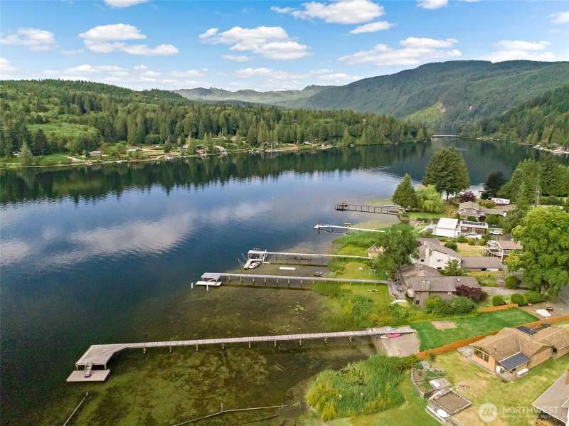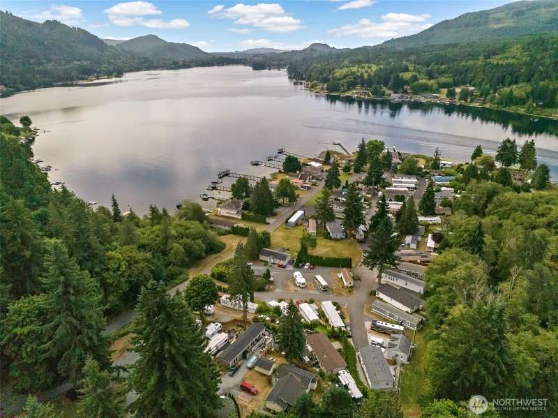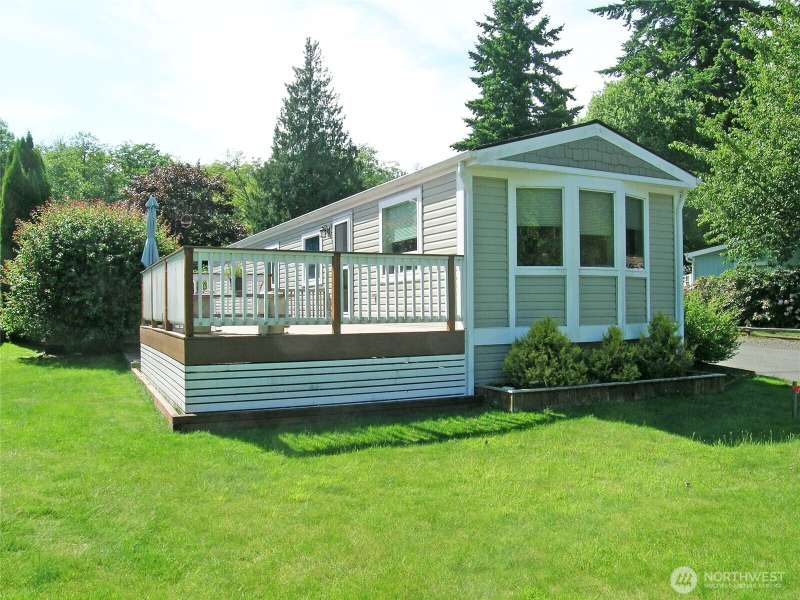 Larger 2 bedroom home located in the highly sought after Lake Samish Terrace Park. Rural setting yet less than 10 minutes to Bellingham's major shopping areas. This home has had a professional complete remodel inside and out giving it an effective age of 2019. Cathedral ceilings. Superb sunny location with a 200+ square foot (12X18) deck overlooking one of the park's greenbelt open areas with lake water views. Very efficient utilities as needed with such upgrades as 'On Demand' tankless hot water heating system and dues pay for Water, Sewer, and basic Cable needs. Large shed as well that is wired for electric plus exterior hookup for electric car needs. The park has it's own private lake water access with dock and Gazebo for get togethers.