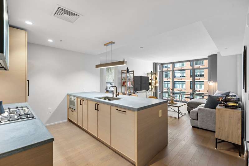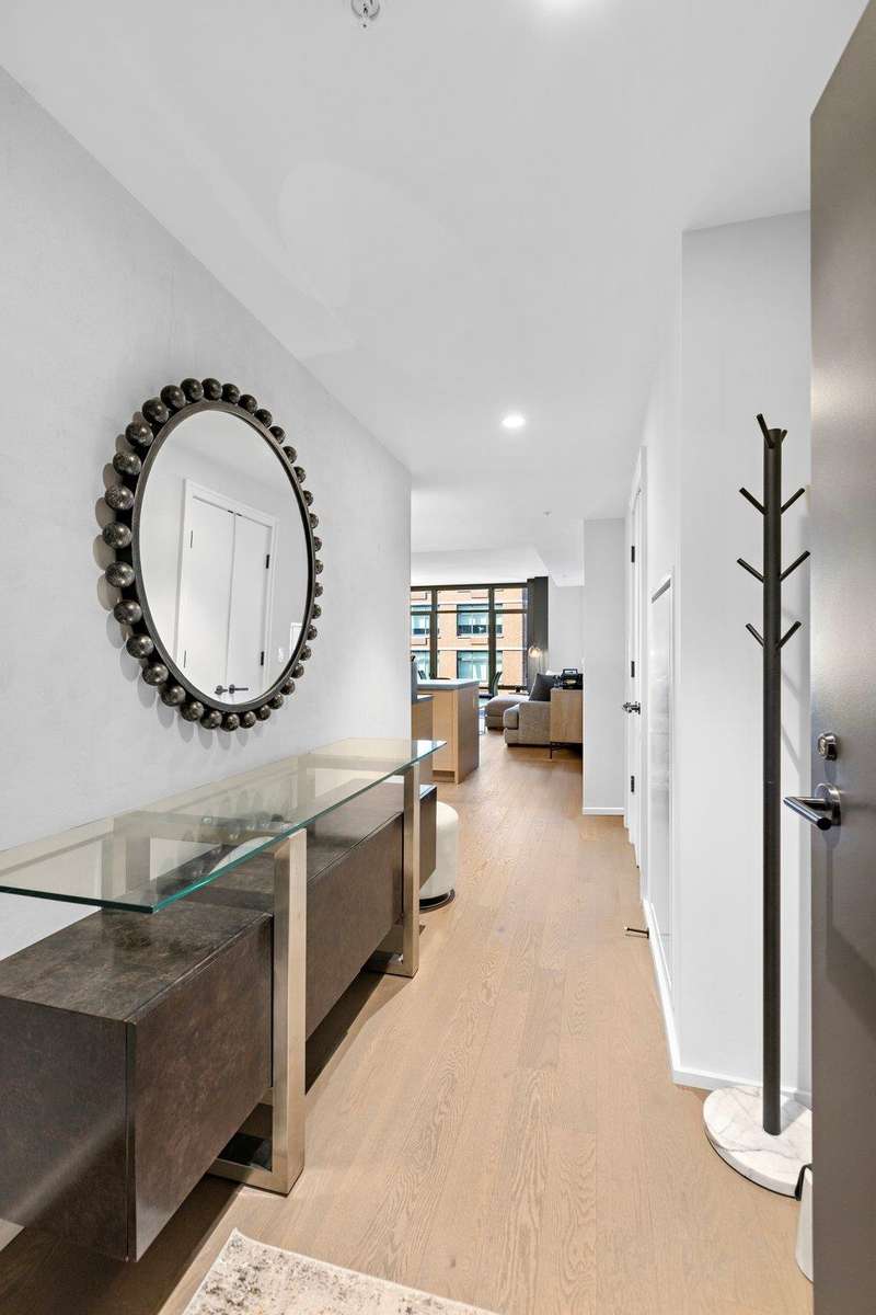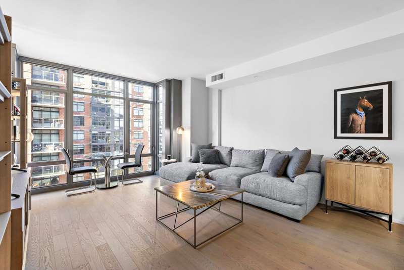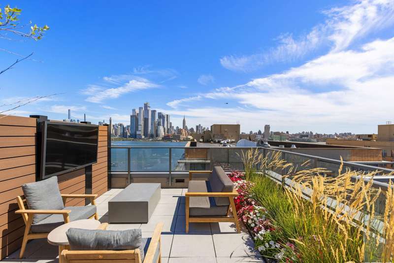 Welcome to Residence 6C at 1425 Hudson, an elegant 1-bedroom, 1-bath home in one of Hoboken ??s most sought-after uptown waterfront buildings. This west-facing residence is filled with afternoon light, enhanced by floor-to-ceiling windows that frame open city views. The well-appointed kitchen features quartz countertops, custom cabinetry, and a suite of premium Thermador appliances, while the open living area provides an ideal setting for both entertaining and everyday comfort. The spacious bedroom offers a large closet, and the spa-inspired bath showcases designer tilework and a glass-enclosed shower. Additional highlights include wide-plank hardwood floors throughout, central air, motorized blinds, custom designer painted walls, and a full-size washer and dryer. Residents enjoy a landscaped rooftop terrace with Manhattan skyline views, outdoor grills, a plunge pool, a fitness center, a children ??s playroom, and 24-hour concierge service. Perfectly located just moments from the 14th Street Ferry, NJ Transit bus lines, parks, and the vibrant shops and restaurants of Washington Street, Residence 6C offers the perfect balance of luxury and lifestyle.