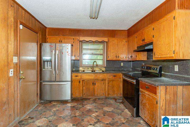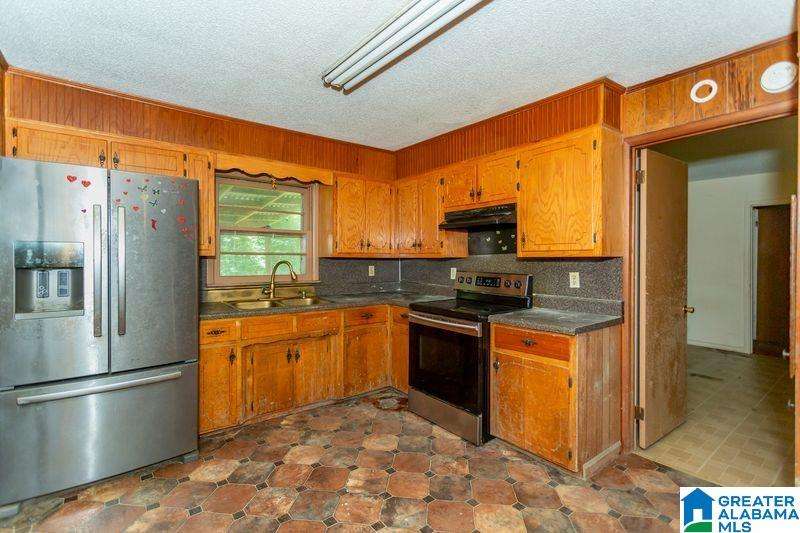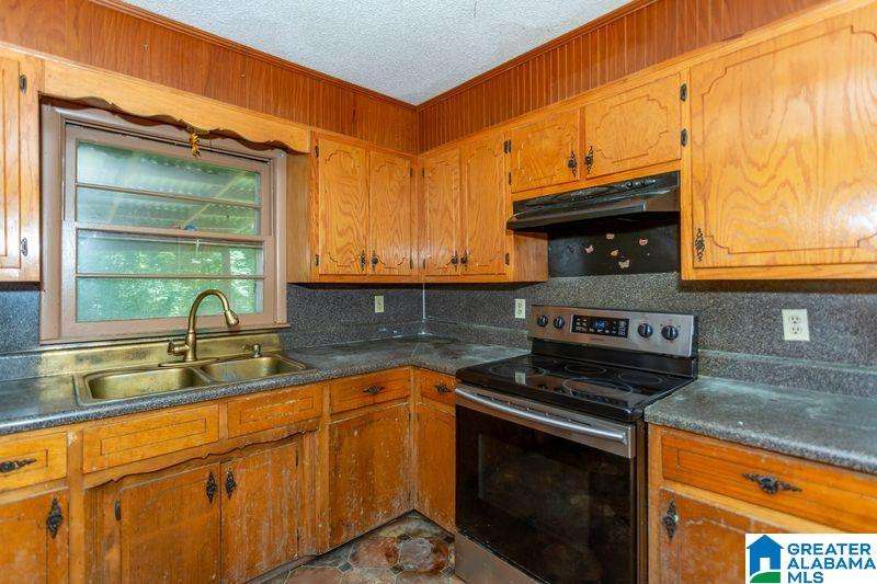 Investors/Buyers, check out this "ready to be renovated" one-level, 4-bedroom home in the Midfield area, just off Jaybird Road near Hueytown. Spacious and full of potential, this home is ready for you to make it a GEM. Inside, you'll find a generous open-concept layout featuring a large family den/living room that flows into the dining area with a clear view of the kitchen. The kitchen itself includes a cozy eat in breakfast nook. Enjoy peaceful mornings in the enclosed front SUNROOM—an ideal spot for your coffee or quiet reading. Step out from the kitchen to a COVERED DECK, perfect for entertaining guests or relaxing outdoors. Additional highlights include a garage, and an HUGE backyard with plenty of space—ideal for a future pool.