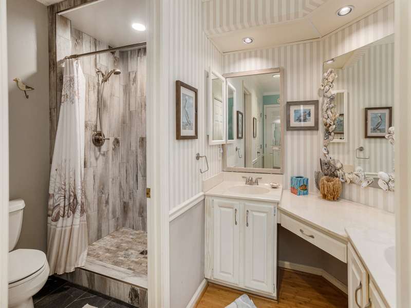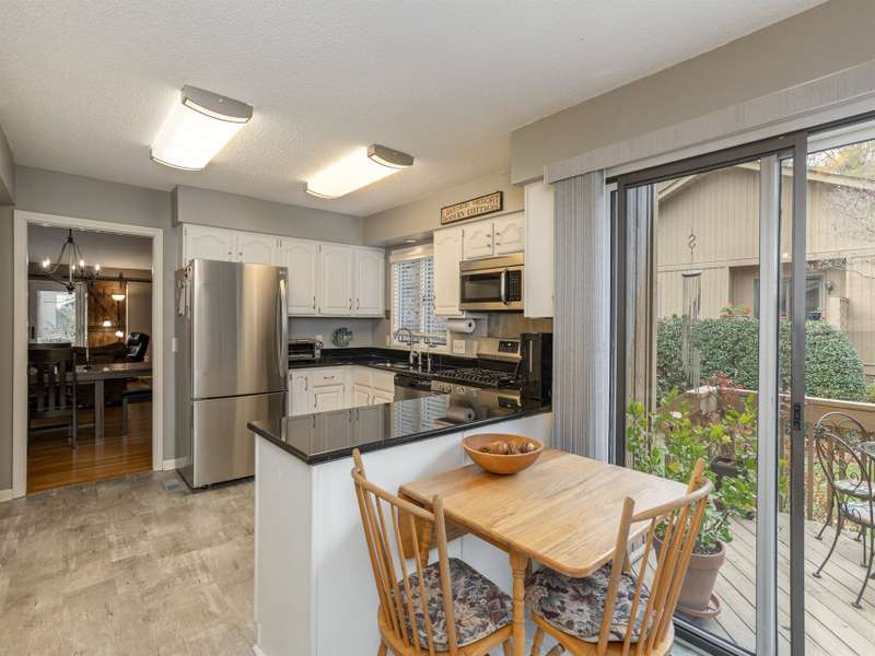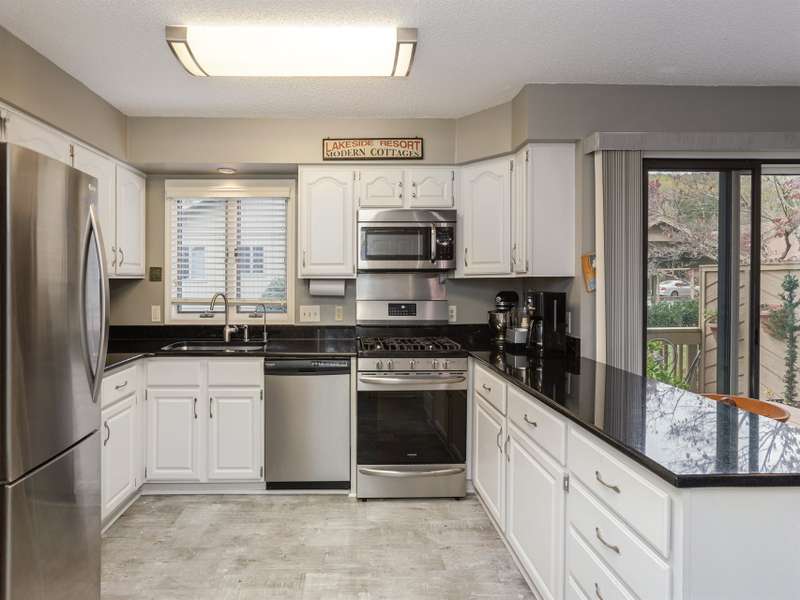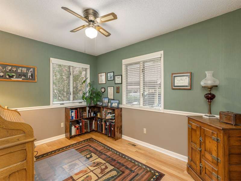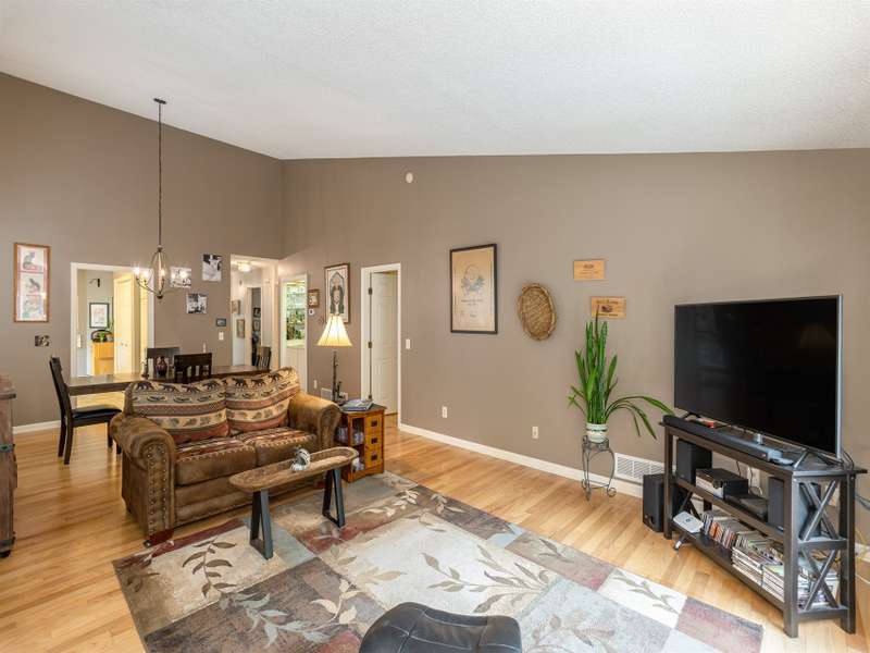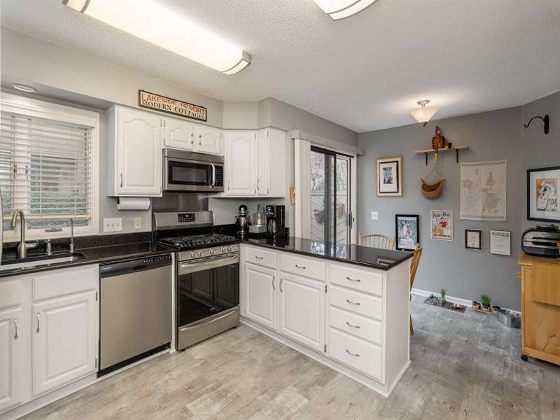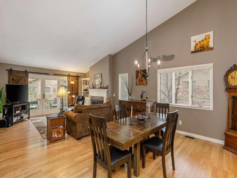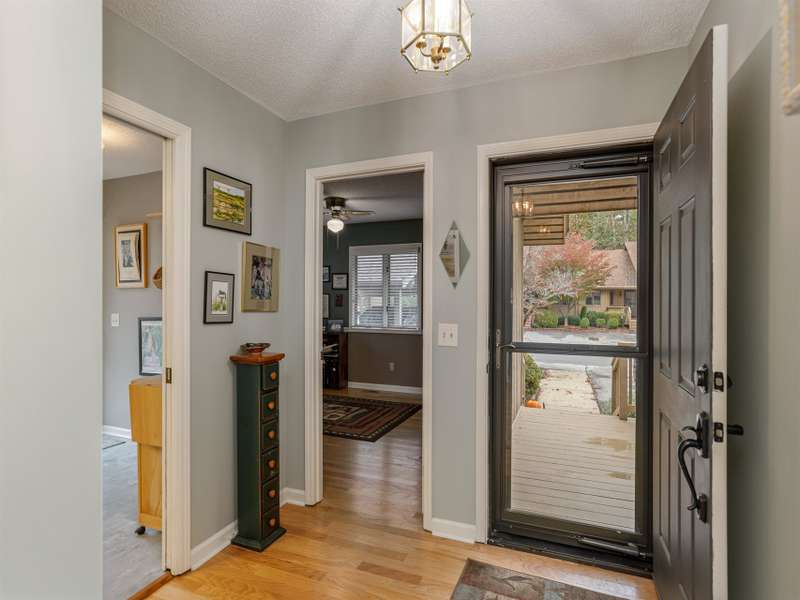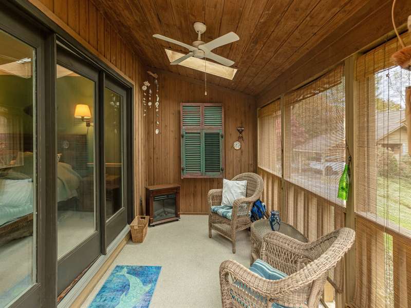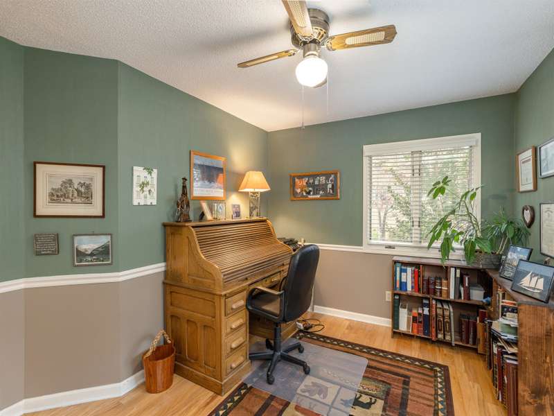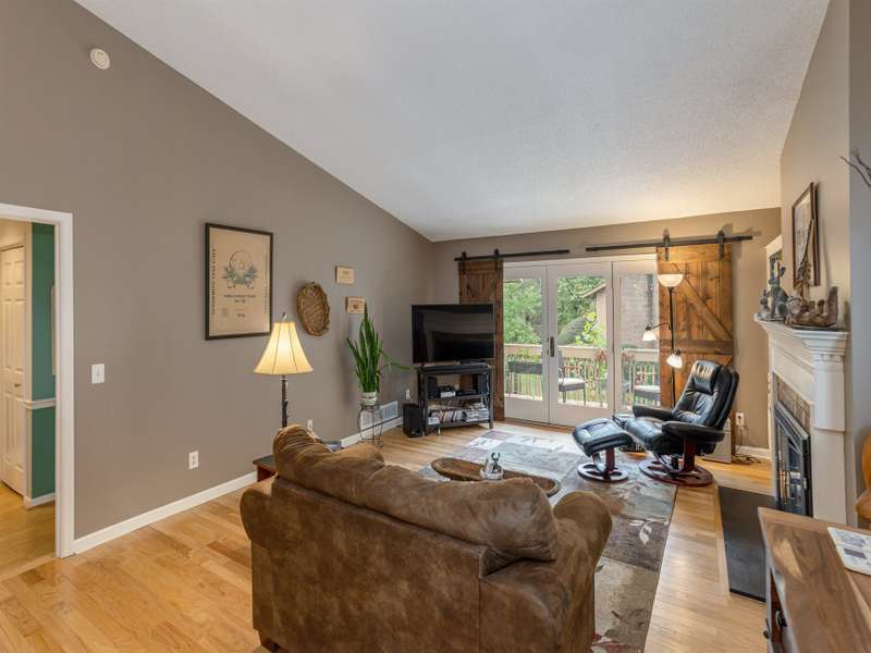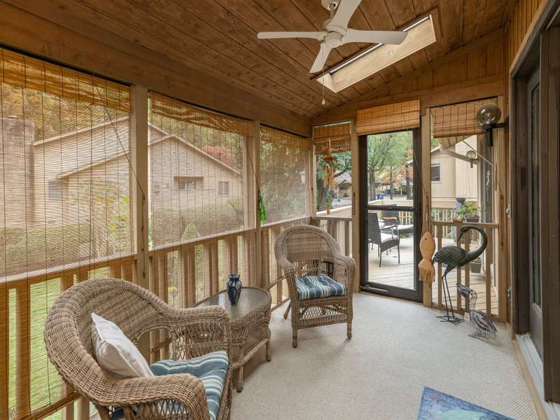 Beautiful one-level condo in The Oaks featuring high ceilings in the living and dining areas. The gas fireplace provides warmth and ambiance during cooler months. The living room offers wood flooring and neutral paint, creating a welcoming space. The kitchen includes solid-surface countertops, stainless steel appliances?gas range, microwave, dishwasher, and refrigerator?plus an eat-in area with access to a side deck, perfect for morning coffee or grilling. The open deck off the living area is ideal for entertaining. Two spacious bedrooms and two full bathrooms. Both bedrooms include walk-in closets. The primary suite offers an updated bathroom with a tile shower and access to a screened porch for relaxing outdoor enjoyment. Additional features include an office/flex space, perfect for crafts or a home studio, and a basement providing ample storage or hobby space. Don't miss this amazing condo in The Oaks?a rare find offering comfort, style, and functionality all on one level.