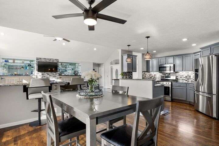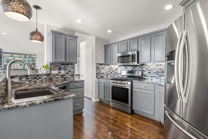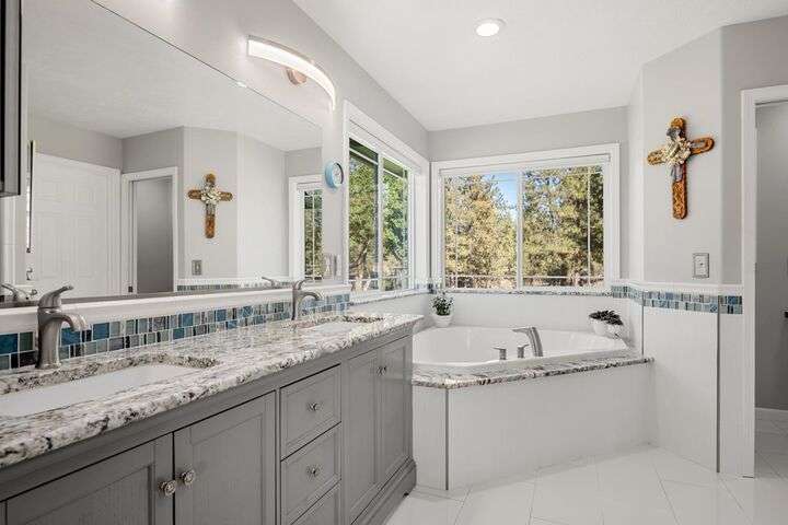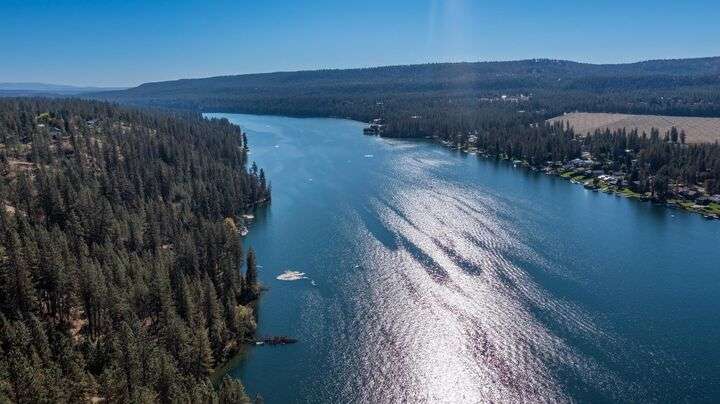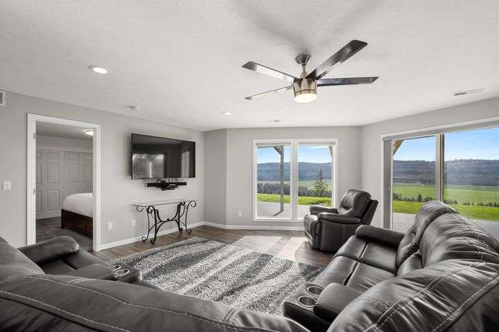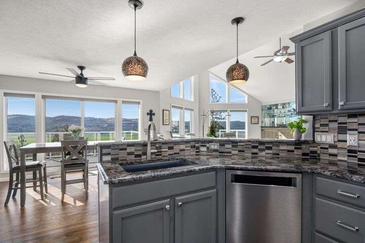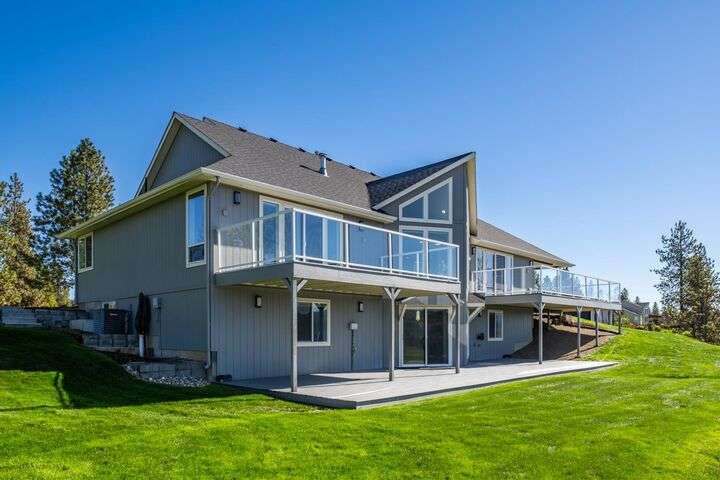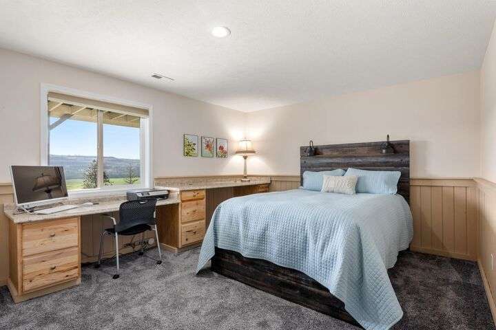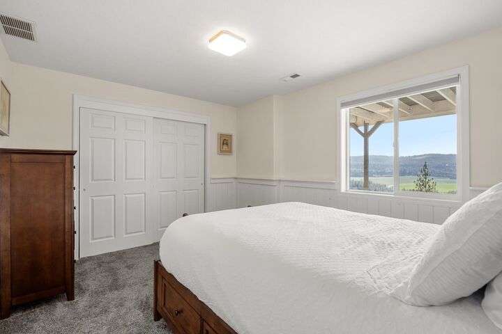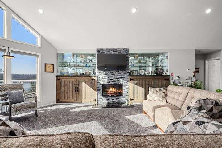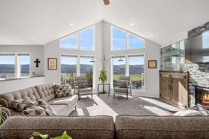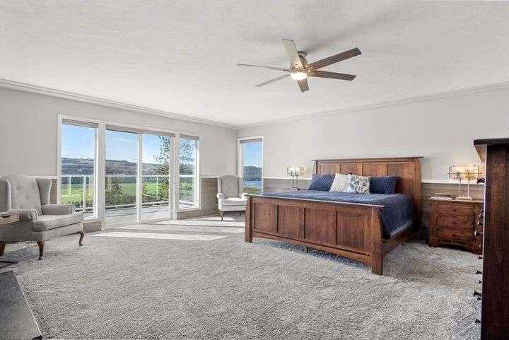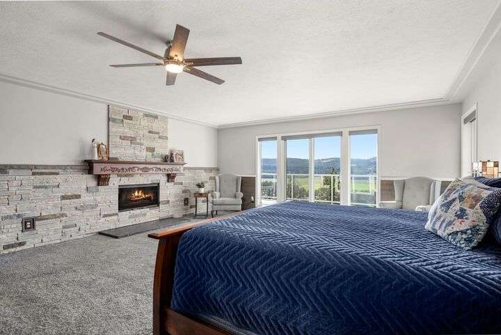 Discover an extraordinary residence nestled in the desirable Suncrest neighborhood, showcasing a breathtaking 240-degree view of Long Lake. This custom-built home spans nearly 6 acres, offering a harmonious blend of privacy and natural beauty. Recently updated, the interior features luxurious granite countertops, new stainless steel appliances, a stylish backsplash, & modern lighting, complemented by fresh paint throughout. With four spacious bedrooms & four bathrooms, there is ample room for comfort. The primary suite includes a private balcony perfect for enjoying stunning sunsets, while a second balcony off the great room extends your outdoor living space. A double-sided fireplace adds a cozy ambiance in both the great room & primary suite. The finished daylight basement includes a second primary bedroom, two additional bedrooms, a rec room, & a wet bar. A newly constructed shop is pre-plumbed & wired, offering potential for an ADU, & gardening enthusiasts will appreciate the included greenhouse!