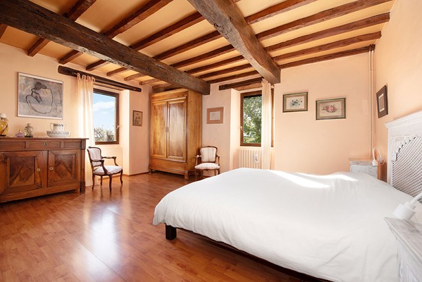 The sleeping area, upstairs, consists of four spacious bedrooms, including a beautiful master suite. Adjoining the main house, a stone cottage of over 80 sqm comprises a pleasant living area with an open-plan kitchen and, upstairs, three bedrooms sharing two bathrooms.