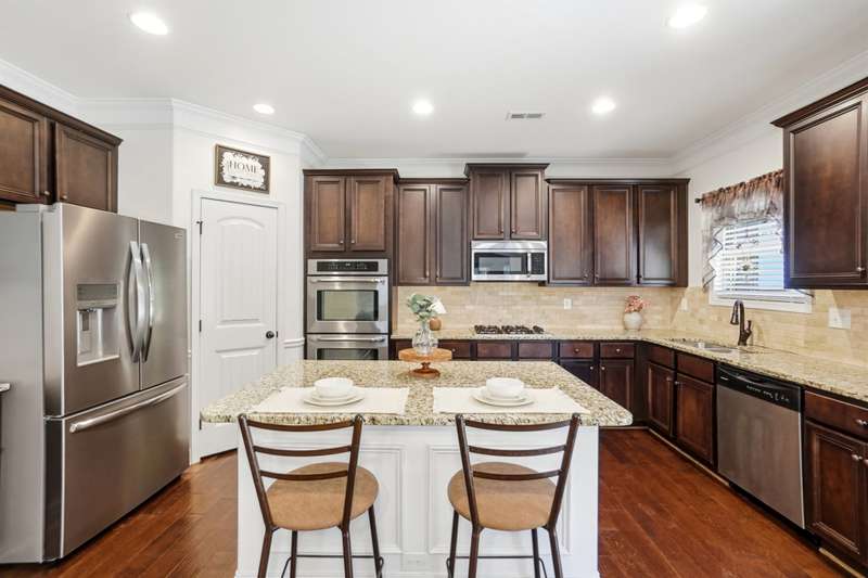 Tucked within the prestigious Kellswater Bridge community, this stunning 3-level home offers exceptional space, comfort, and versatility. Step through the beautiful front door and be greeted by soaring vaulted ceilings and a bright, open layout that welcomes you home. The formal dining room is perfect for entertaining family and friends, while the spacious living room features a cozy gas fireplace and large windows that fill the space with natural light. The expansive kitchen boasts an oversized island, abundant cabinetry for storage, and a whole-home water purification system. A guest bedroom and full bath on the main level provide ideal accommodations for visitors.Enjoy year-round relaxation on the screened-in patio overlooking a private, wooded backyard that extends beyond the tree line?offering both peace and privacy. Upstairs, the luxurious primary suite includes a flex space that can be used as a private sitting room, home office, or gym. The second level also features a loft, two additional bedrooms with walk-in closets, and a laundry room with brand-new tile flooring for added convenience.The third floor offers two more bedrooms, a second living area, and a kitchenette?perfect for guests, multigenerational living, or a private retreat. Freshly painted throughout, this home provides three full levels of functional living space and thoughtful design details at every turn. Nestled on a prestigious cul-de-sac street with minimal traffic, this property combines elegance, comfort, and privacy in one of Kannapolis's most desirable neighborhoods?just minutes from shopping, dining, and major highways.