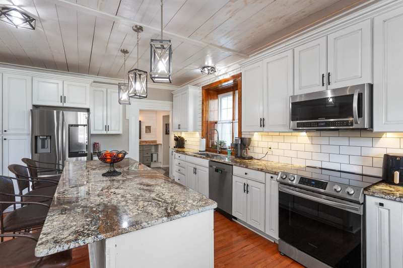 Welcome to the quaint town of Broadway and this charming, updated farmhouse loaded with character including wood floors, high tongue & groove ceilings, craftsman style doors & window trim. The main level hosts the formal dining, living room, first bedroom, full bath with laundry and the amazing country kitchen with gorgeous white cabinets, breakfast island, granite countertop, stainless steel appliances and whitewashed wood ceiling! From the kitchen you have access to the covered rear porch overlooking the fenced back yard with 12x20 storage building ready for electric hookup. The upper-level features 2 additional bedrooms that share a full bath, the laundry and the spacious owner’s suite with walk-in closet and full bath! Take the next level to the floored attic for extra storage! The wrap around porch has access to the 2-bedroom, 1-bath apartment with kitchen, living area and laundry that would make a great in-law suite or AirBnB! Too many features to list, you will just have to come see! Broadway offers parks with festivals, farmer’s market, dining, shops, schools and within 2 hours of major airports, within 5 miles of I-81.