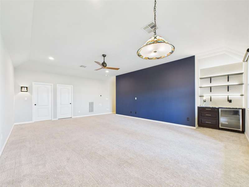 This home is part of the Mesa Oaks section of Crystal Falls, featuring the Windsor Floorplan, and is available for move-in this November. The 1.5-story design includes 4 bedrooms, 3 bathrooms, an upstairs bonus room, a covered porch, and a covered balcony off the bonus area. The gourmet kitchen is a showstopper, complete with stainless steel appliances and gorgeous granite counters, perfect for both everyday living and entertaining. Upstairs, a large flex space with a full bath, walk-in closet, and built-in wet bar (with beverage fridge!) opens to a private balcony with sweeping sunrise views -- perfect for a guest suite, game room, or cozy retreat.
