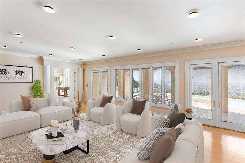 North Tustin's Crown Jewel – A Private Hilltop Estate with Panoramic Catalina & OC Views! Perched at the summit of North Tustin’s prestigious Rocking Horse Ridge, this custom-built estate is the epitome of privacy, luxury, and panoramic beauty. This exclusive gated estate is located in a guard-gated community. Discover a breathtaking sanctuary where sweeping views span from Catalina Island across the entirety of Orange County. Encompassing a total estimated 10,000 square feet across two distinct buildings—an approximate 9,000 square foot, three-level main residence and a 1,200 square foot guest house above a 6-car garage—this estate offers a rare combination of expansive living space, architectural elegance, and thoughtful design. The layout provides ample room for large families, multigenerational living, or extended-stay guests. Set on a generous 1.3 acres, the main home is filled with soaring ceilings and walls of glass that flood each space with natural light. Every main living area connects seamlessly to the outdoors—through wraparound balconies, private decks, or lush gardens—ensuring the stunning views are always on display. Designed for both grand entertaining and refined everyday living, the gourmet chef’s kitchen opens directly to the spacious family room. The home also features two luxurious primary suites (one on the main floor), three ensuite secondary bedrooms, a custom study, loft play area, bonus room with entertainer’s bar, home theatre, and pool room. Wellness and relaxation are central to the lower level, where a private gym is complemented by its own sauna and dedicated full bath. A private elevator connects all levels of the home, and a 6-car garage offers an ideal setup for car collectors and enthusiasts. The separate guesthouse provides ultimate flexibility, with two additional bedrooms, a bath, and its own living space—perfect for hosting guests or accommodating extended family. Step outside to enjoy a true resort experience with a sparkling pool and spa, built-in BBQ area, and professionally landscaped grounds that invite both intimate gatherings and large-scale entertaining. Located within the amenity-rich Rocking Horse Ridge community—offering greenbelts, a clubhouse, pool, spa, tennis courts, and more—and zoned for the highly acclaimed Tustin Unified School District, this home represents the pinnacle of Southern California living. A once-in-a-lifetime opportunity to live above it all!