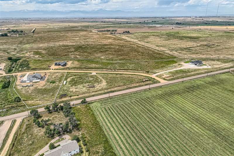 New custom home community on CR 21, south of Hwy 52, 5 miles east of I-25 and Erie. 360-degree views and exceptional mountain views. Only 1 of 13 lots is still available. This lot is a corner lot with 1.2 Acres waiting for your custom home. Covenant controlled community does have minimum square footage requirements and does allow for outbuildings and limited livestock. Lot is annexed to Fort Lupton. Fort Lupton will handle all building permits.
