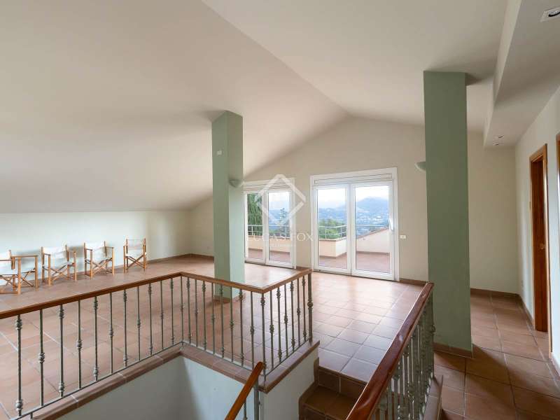 In the privileged natural setting of Vallromanes, Lucas Fox presents this magnificent detached house of 471 m², situated on a large plot with a garden and breathtaking panoramic views. This spacious property offers abundant natural light, ideal for families seeking a high quality of life and tranquility just minutes from Barcelona. On the ground floor, we find a spacious living-dining room with direct access to the garden, a large kitchen with access to the exterior porch, a room currently used as an office, a guest bathroom, a double bedroom , a full bathroom and the main bedroom with private bathroom. The first floor, with the possibility of independent access , has a large multipurpose room, a bedroom, a full bathroom with bathtub and a terrace with open views of the mountains. In the floor , there is a large garage, with additional space to create a gym or storage area, along with the machine room. A property surrounded by nature, with spectacular views and all the amenities to enjoy the tranquility of Vallromanes.