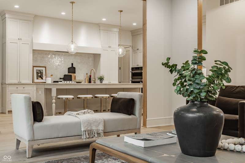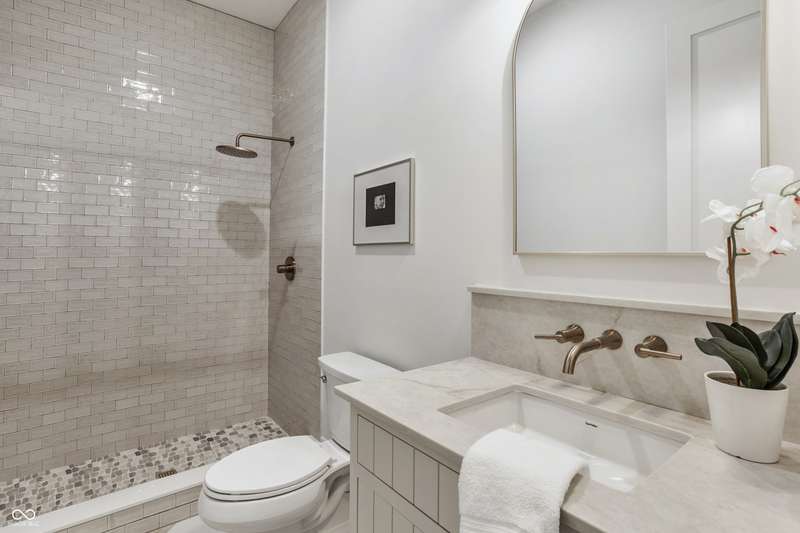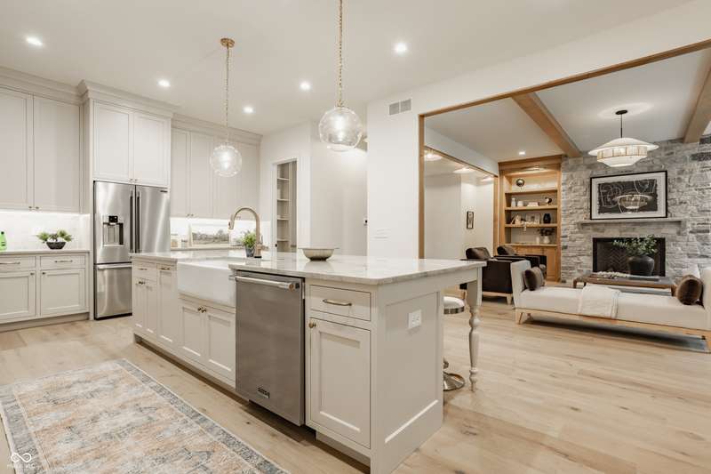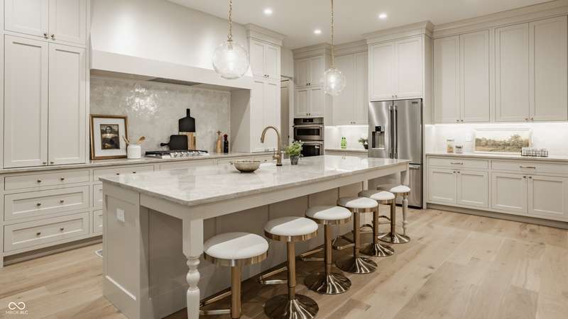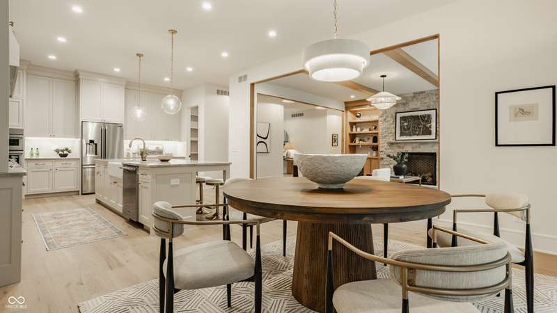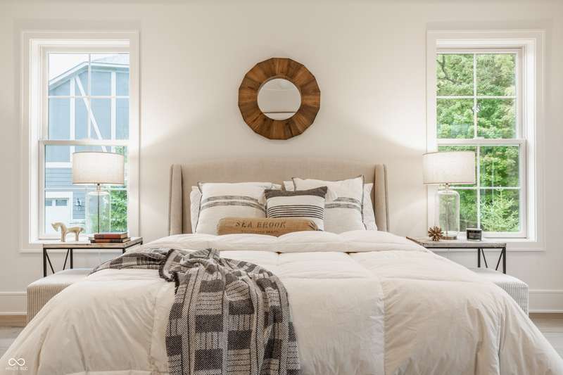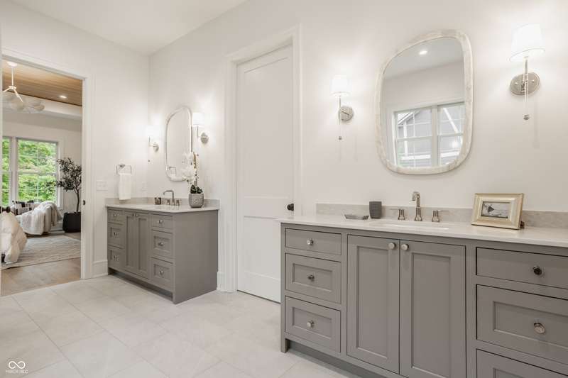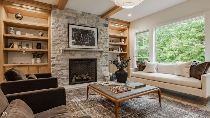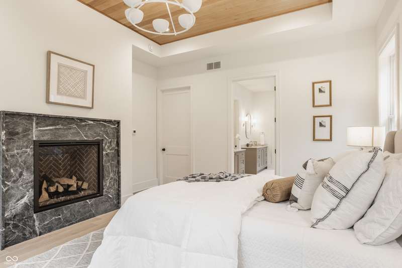 Meticulous design and quality craftsmanship define this new residence by Ett Hem Properties. Situated on one of the neighborhood's most desirable lots, every detail has been carefully considered, from the warmth of custom, white oak finishes and hardwood floors to built-ins, designer lighting, and hand-selected tile. Ten-foot ceilings and expansive windows fill the open plan with natural light, balancing architectural sophistication with everyday comfort. The gourmet kitchen showcases custom cabinetry, Taj Mahal stone, premium appliances, and an oversized island-perfect for entertaining or daily family life. The main-level primary suite offers a serene retreat with a fireplace framed in soapstone, a spa-inspired bath with walk-in shower, separate soaking tub, dual vanities and a custom walk-in closet, while a secondary main-floor bedroom provides flexible space for guests or a home office. Upstairs, generously proportioned bedrooms, a versatile loft, and a spacious bonus room continue the theme of thoughtful design with hardwoods throughout and carefully chosen tile and stone. The finished lower level expands living and entertaining options with a wet bar, guest suite, and open areas ideal for a theater, game room, or fitness space. Modern systems-including multi-zone HVAC, on-demand water, and two conveniently located laundry rooms-ensure comfort and practicality year-round. Outdoors, a covered porch and private backyard framed by mature trees provide a quiet retreat. With six bedrooms, 5 full baths, and a location just minutes from Zionsville's shops and restaurants, this home combines thoughtful design, quality finishes, and timeless appeal. Welcome home!
