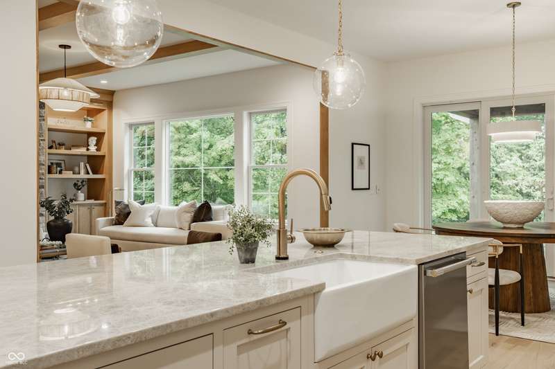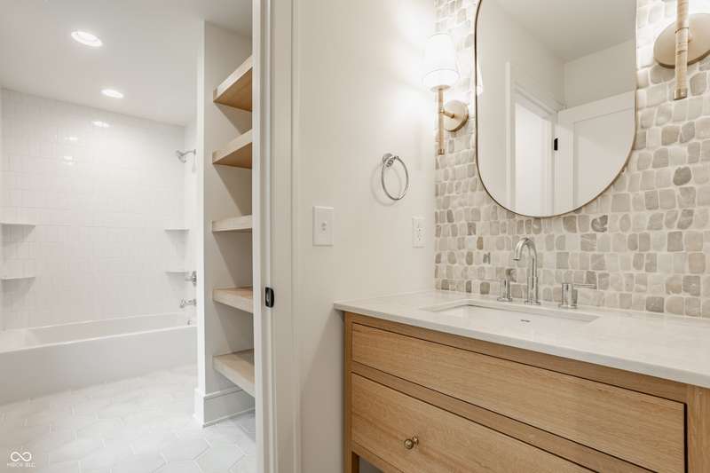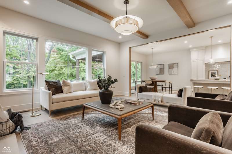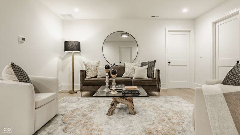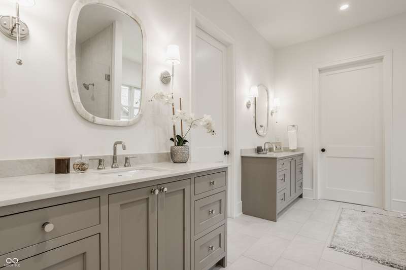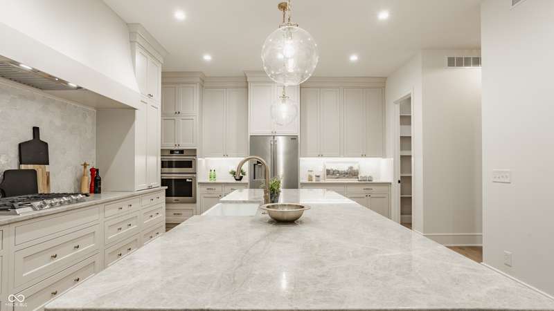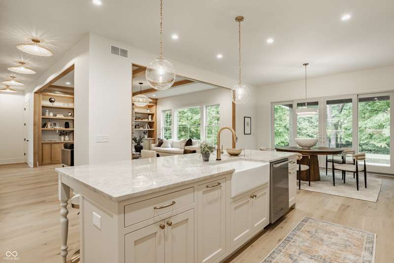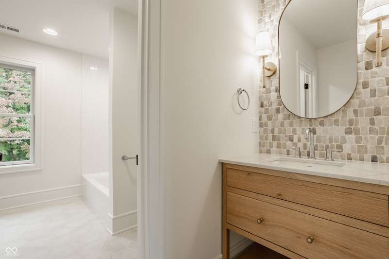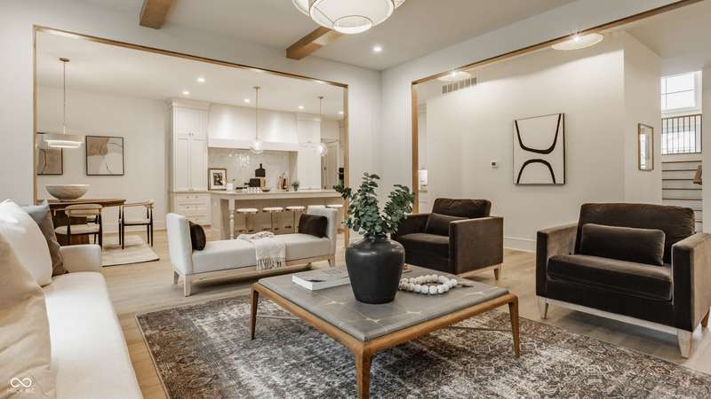 Meticulous design and quality craftsmanship define this new residence by Ett Hem Properties. Situated on one of the neighborhood's most desirable lots, every detail has been carefully considered, from the warmth of custom, white oak finishes and hardwood floors to built-ins, designer lighting, and hand-selected tile. Ten-foot ceilings and expansive windows fill the open plan with natural light, balancing architectural sophistication with everyday comfort. The gourmet kitchen showcases custom cabinetry, Taj Mahal stone, premium appliances, and an oversized island-perfect for entertaining or daily family life. The main-level primary suite offers a serene retreat with a fireplace framed in soapstone, a spa-inspired bath with walk-in shower, separate soaking tub, dual vanities and a custom walk-in closet, while a secondary main-floor bedroom provides flexible space for guests or a home office. Upstairs, generously proportioned bedrooms, a versatile loft, and a spacious bonus room continue the theme of thoughtful design with hardwoods throughout and carefully chosen tile and stone. The finished lower level expands living and entertaining options with a wet bar, guest suite, and open areas ideal for a theater, game room, or fitness space. Modern systems-including multi-zone HVAC, on-demand water, and two conveniently located laundry rooms-ensure comfort and practicality year-round. Outdoors, a covered porch and private backyard framed by mature trees provide a quiet retreat. With six bedrooms, 5 full baths, and a location just minutes from Zionsville's shops and restaurants, this home combines thoughtful design, quality finishes, and timeless appeal. Welcome home!