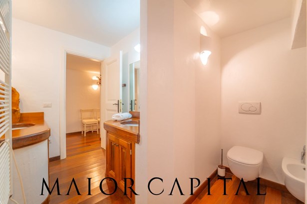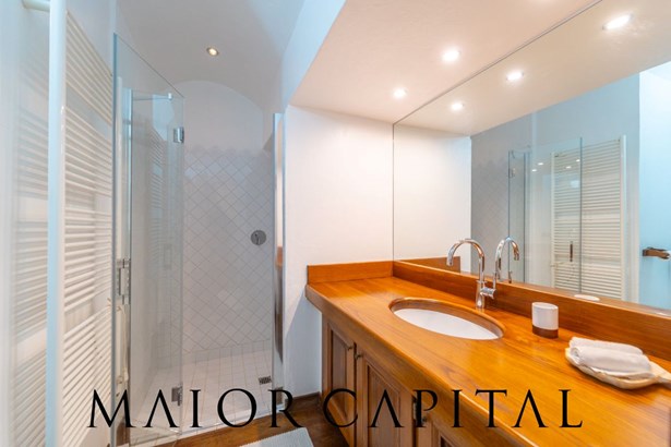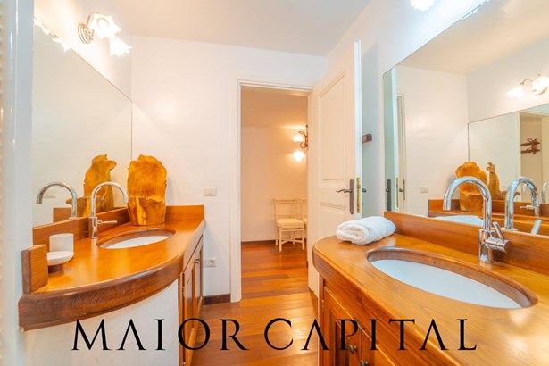 On the lower floor, also accessible via an external entrance, there are four double bedrooms, all bright and generously spacious, with direct access to the garden or terrace via French windows, ensuring privacy and independence for guests. Each bedroom has a large, functional bathroom, while a relaxation lounge and hallway complete the floor, creating an elegant and welcoming environment.