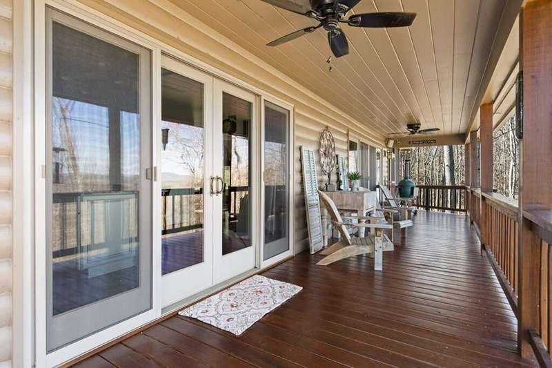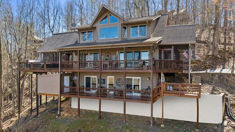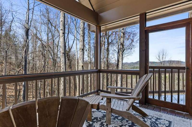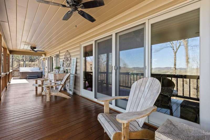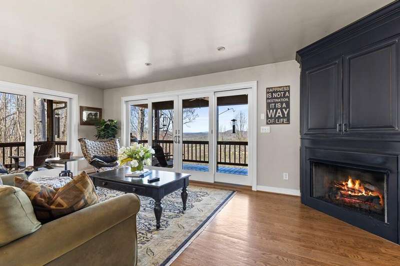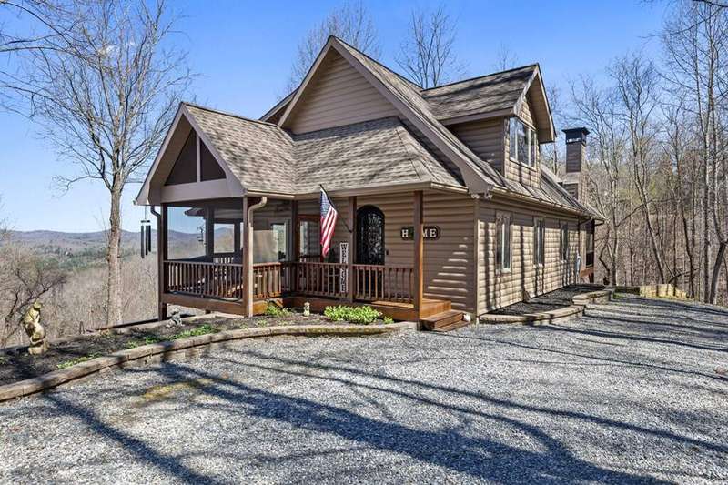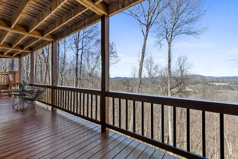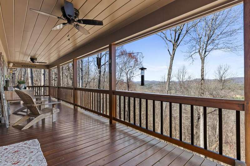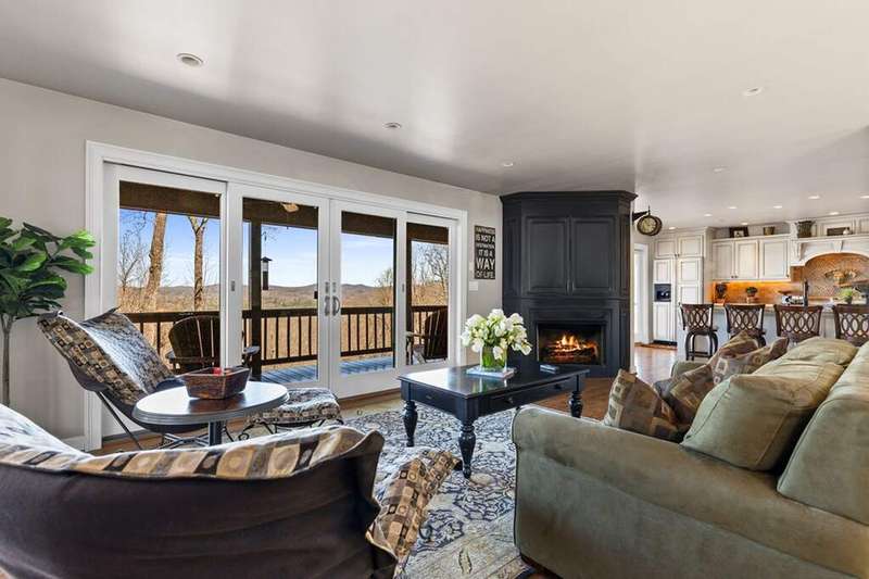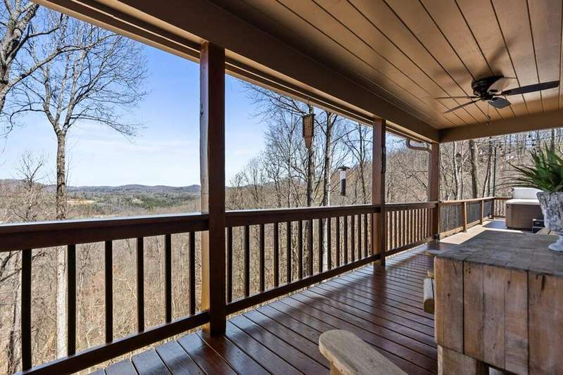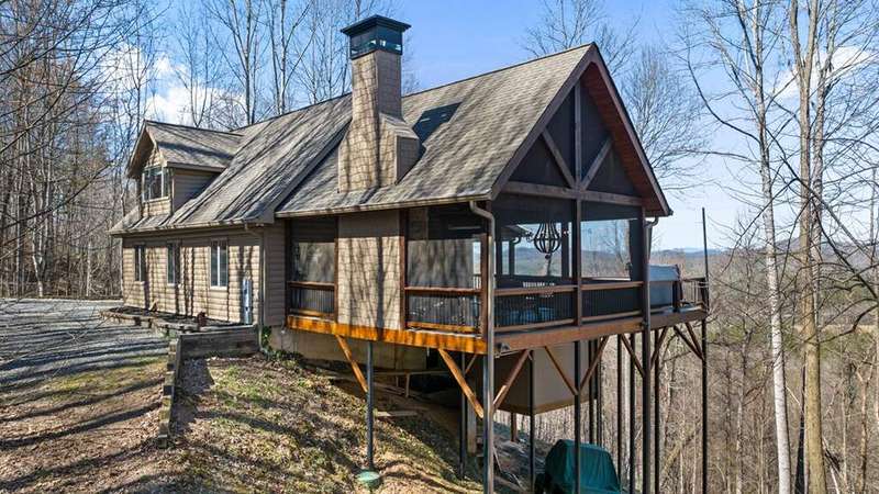 Prepare to be captivated by breathtaking 180-degree long-range views from this exceptional property, available for the first time! Enjoy unparalleled vistas from every level, with expansive decks providing the perfect vantage point just minutes from downtown Blue Ridge. Step inside and be immediately greeted by the stunning panorama from the inviting living room, complete with a cozy fireplace. The meticulously designed kitchen is a true highlight, showcasing upgraded appliances including built in air fryer and exquisite cabinetry. This is more than just a cabin; it's a true mountain retreat. Extend your living space onto the stunning screened-in porch, complete with a wood-burning (with gas logs ) fireplace for cozy evenings and plenty of room for al fresco dining and memorable gatherings. From here, step out onto the expansive decks and unwind in the hot tub under a canopy of stars. The upstairs primary suite offers a haven of comfort, where you can wake up to captivating views and enjoy luxurious touches like a gorgeous tiled steam shower, heated bathroom floor, custom closets, and beautiful cabinetry. The thoughtfully designed terrace level provides a second bedroom and a versatile family area, perfect for game nights and creating lasting memories in your mountain escape. Also, for optimum music enjoyment: wired speakers for whole house audio. This unique property is a must-see to truly appreciate its charm and tranquility. Give it a look...you will not be disappointed.