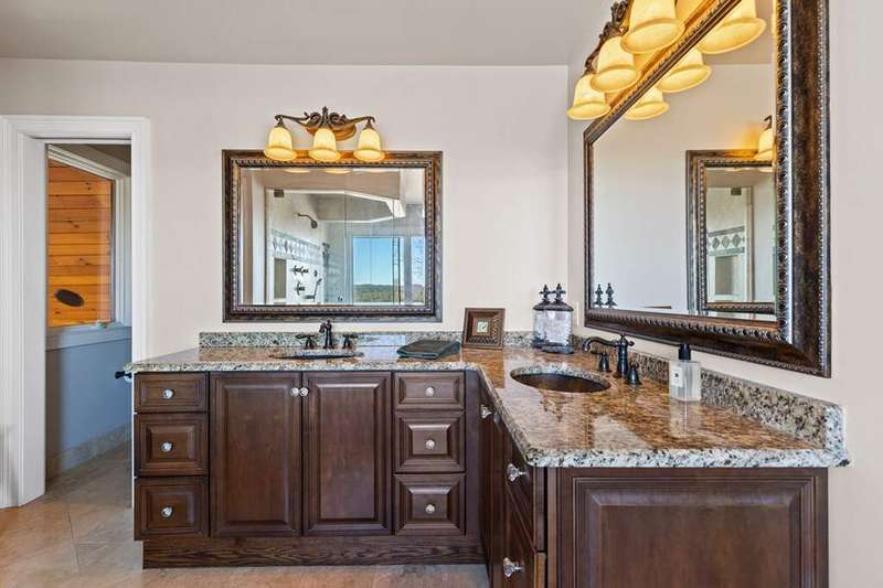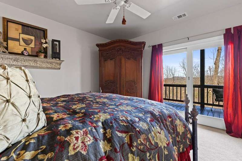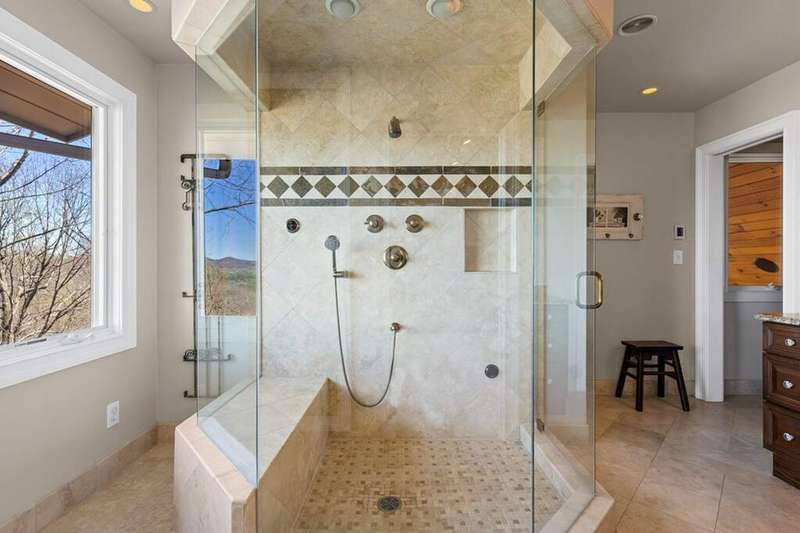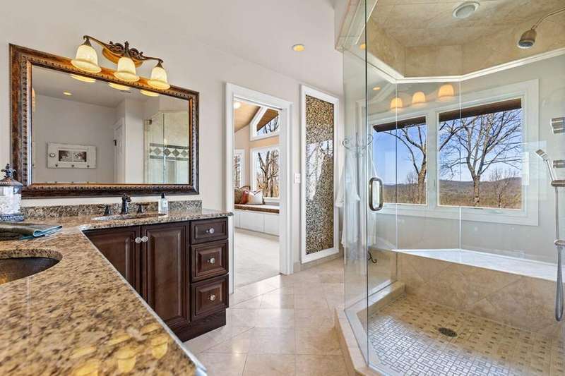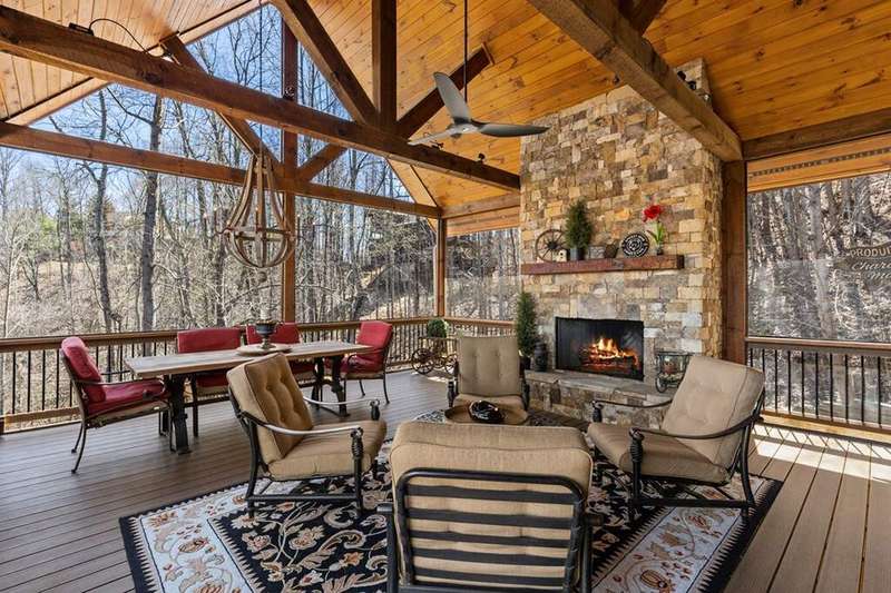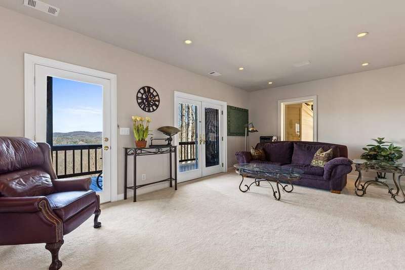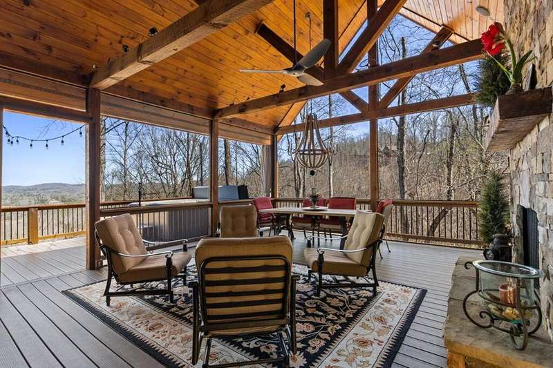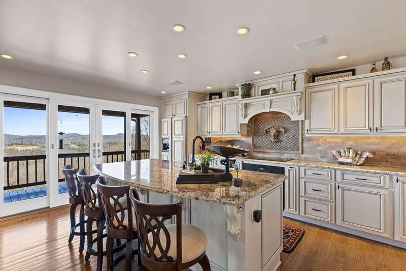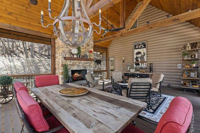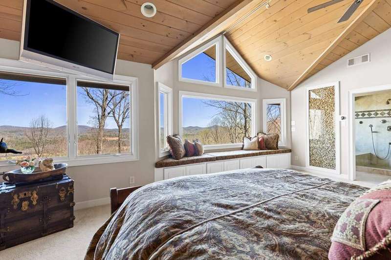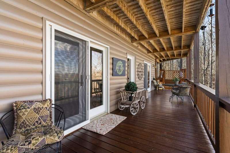 Prepare to be captivated by breathtaking 180-degree long-range views from this exceptional property, available for the first time! Enjoy unparalleled vistas from every level, with expansive decks providing the perfect vantage point just minutes from downtown Blue Ridge. Step inside and be immediately greeted by the stunning panorama from the inviting living room, complete with a cozy fireplace. The meticulously designed kitchen is a true highlight, showcasing upgraded appliances including built in air fryer and exquisite cabinetry. This is more than just a cabin; it's a true mountain retreat. Extend your living space onto the stunning screened-in porch, complete with a wood-burning (with gas logs ) fireplace for cozy evenings and plenty of room for al fresco dining and memorable gatherings. From here, step out onto the expansive decks and unwind in the hot tub under a canopy of stars. The upstairs primary suite offers a haven of comfort, where you can wake up to captivating views and enjoy luxurious touches like a gorgeous tiled steam shower, heated bathroom floor, custom closets, and beautiful cabinetry. The thoughtfully designed terrace level provides a second bedroom and a versatile family area, perfect for game nights and creating lasting memories in your mountain escape. Also, for optimum music enjoyment: wired speakers for whole house audio. This unique property is a must-see to truly appreciate its charm and tranquility. Give it a look...you will not be disappointed.