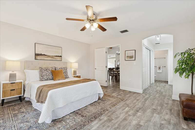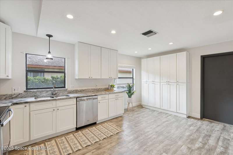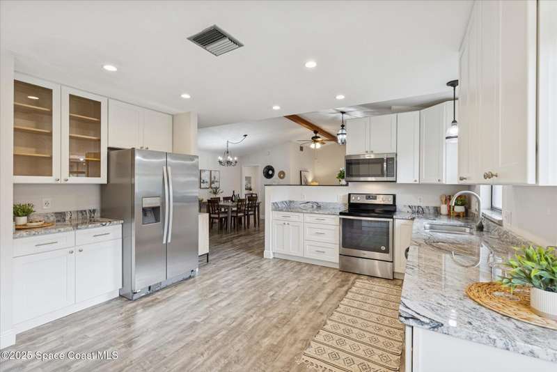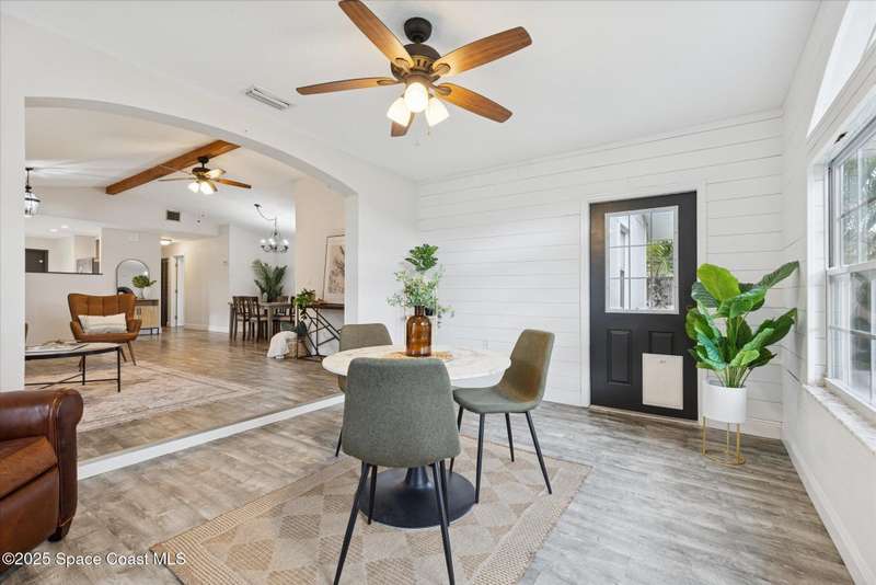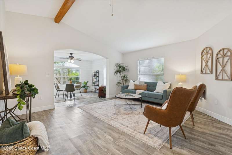 Remodeled move-in ready 3 bed, 2 bath home with a 2-car garage and an oversized driveway. Easy single-level living with a tropical palm tree-filled backyard. The updated kitchen offers granite counters, additional cabinetry for pantry items, stainless steel appliances, ample space to add your dream island and an open flow to the living and dining spaces. A flexible bonus room-perfect as a sunroom, den, office, or second living area-is wrapped in whitewashed shiplap and surrounded by windows for all-day natural light. Fill it with all the plants your heart desires! The wood beam spanning the living room ceiling adds another touch of character. Your primary bedroom has an ensuite with granite counters and a clean, classic subway tiled walk-in shower. Even the guest bathroom is remodeled! Step outside to a fully fenced backyard that shouts Florida lifestyle, ideal for relaxing or weekend cookouts. Love the outdoors? You're a short drive to Kiwanis Island and Kelly Park with public boat ramps, kayak launches, tennis, basketball, walking paths, playgrounds, and racquetball courts. Brand new water heater installed too!