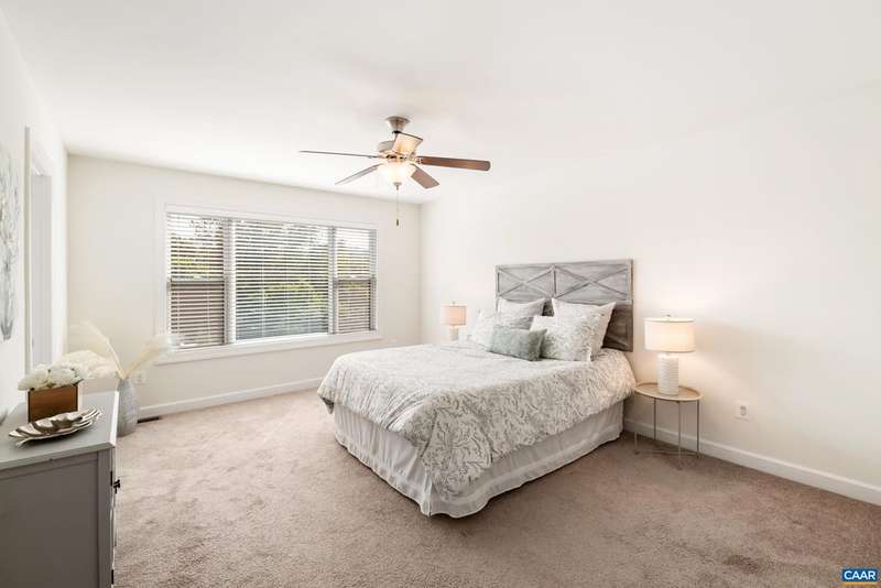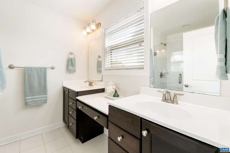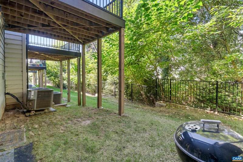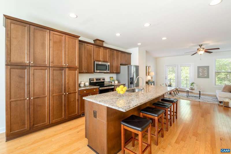 Marvelous Belmont townhome freshly painted and move-in ready! Easy care, efficient living close to all things Charlottesville. This popular "Bainbridge" model is open, spacious and flooded with light! Abundant upgrades including an upscale kitchen with granite, huge island with breakfast bar, handsome cabinetry, stainless steel appliances and large DR picture window. Find hardwoods on main living level and in all traffic areas! Step out glass doors to a deck with composite decking and backed by trees. The Owner's Suite is a cozy retreat with ceiling fan, large walk-in-closet and large bath with double vanities. Convenient BR-level laundry! But wait there's more! The terrace bedroom offers private quarters with huge closet, full bath and double doors to back yard. So much storage with 2 foyer closets, both brightly lit and one with shelving, as well as a 125sf utility room. All this, and walking distance to nearby restaurants (Beer Run!) as well as the downtown pedestrian mall and summer concerts. Move in, enjoy Cville and start living!