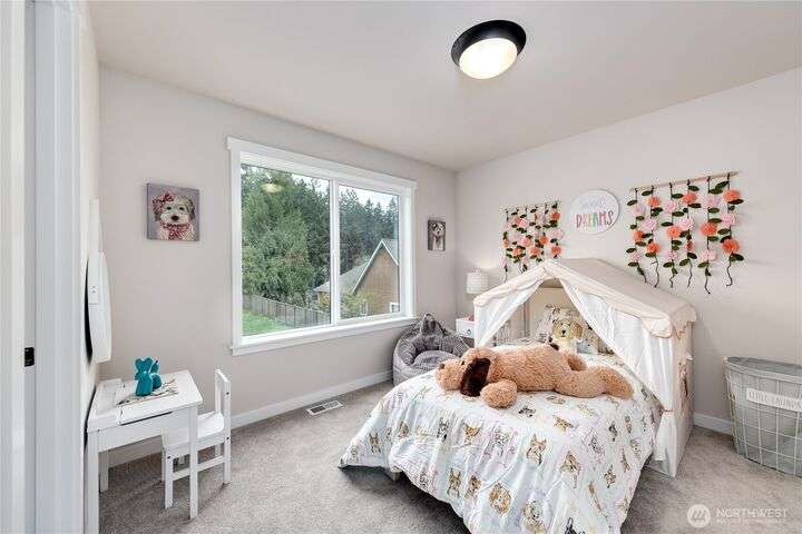 Hillsdale Model Home! Minutes to Silverdale, Bangor, Puget Sound Shipyard. Central Kitsap Schools including the neighboring Silverdale Elementary w/community gate access & recently built CK Middle & High. Home features quartz counters, luxury vinyl plank flooring, soft close cabinets, fully landscaped yard w/sprinkler system, fenced rear yard, heat pump providing year round heating & cooling comfort, and fiber internet! Site Registration Policy: Buyer Broker registered on 1st visit & Broker w/client on 1st or 2nd visit. Estimated closing for December. Home includes fridge, full window case, custom counters, yard sprinkler system. Corner lot with views towards Mt Rainier and Dyes Inlet.