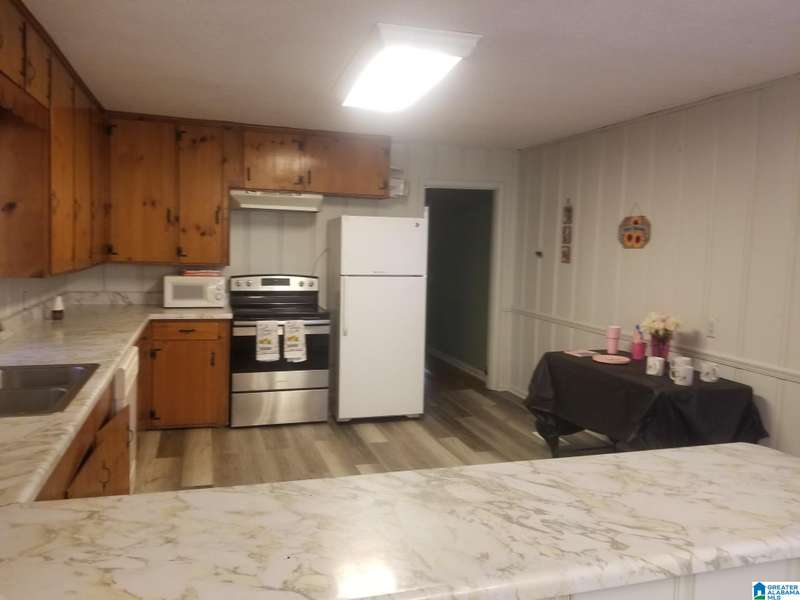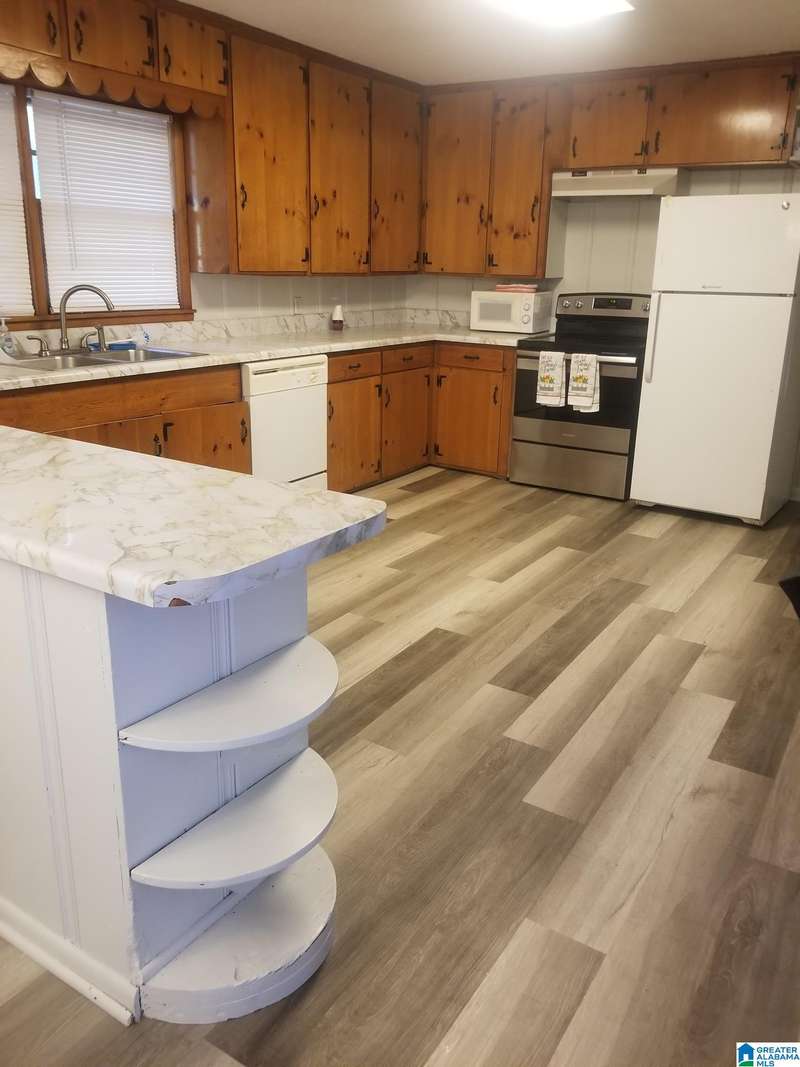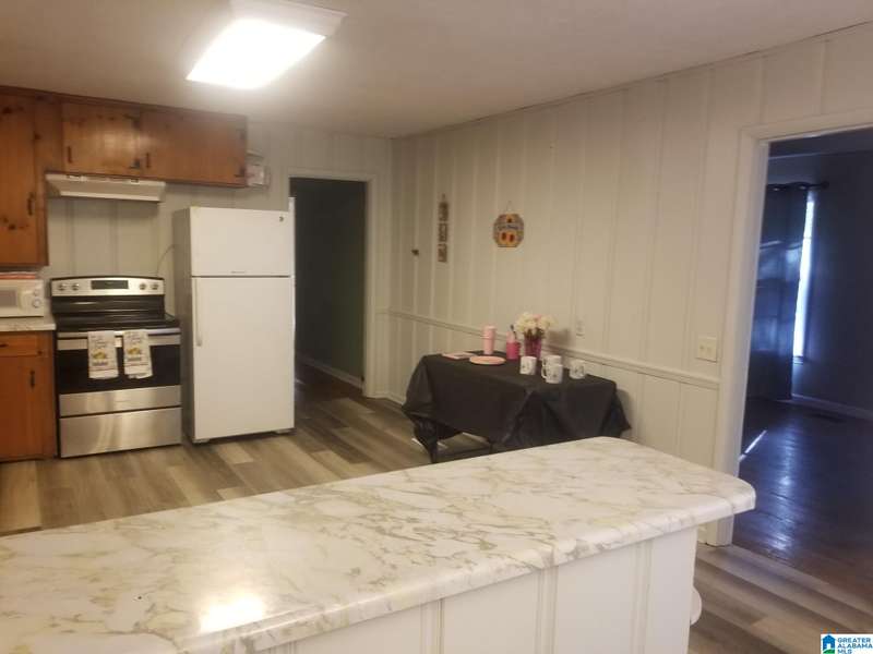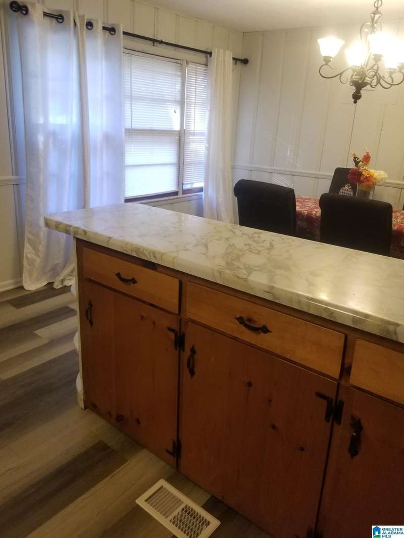 Beautiful home with such spacious rooms. Huge living room and kitchen with eating area. New flooring in kitchen and one bathroom. The kitchen is huge and ideal for a chef. Big master bedroom with separate dressing area in the bathroom. Extra bathroom with separate shower just remodeled. Big extra bedroms with plenty of close space. Garage with washer dryer area. Covered back porch overlooking fenced back yard. Such a charming home so close to restaurants and shopping. Must have appointment to see this home. Selling home as is! Potential for commercial in the future subject to being rezoned.