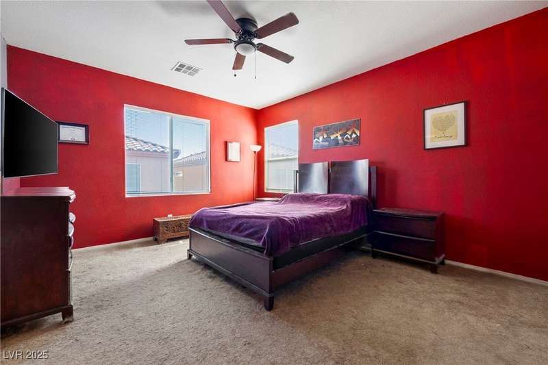 PAID OFF SOLAR! Beautiful home in prime Mountains Edge location! Tucked away at the end of a quiet cul-de-sac, this charming residence sits on a desirable corner lot with an extra-long driveway and a larger backyard than most in the neighborhood. Enjoy nearby parks, shopping, dining, and more all just minutes away! The backyard features pavers and desert landscaping for easy maintenance, while the home includes solar panels for energy efficiency. Inside, you’ll find a spacious primary retreat with a walk-in closet and generous ensuite bath. Recent updates include new HVAC, furnace, water heater, water softener, toilets, and dishwasher. Move-in ready and perfectly located, this is Mountains Edge living at its best!
