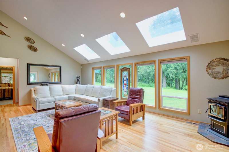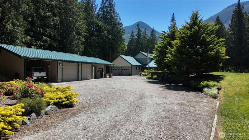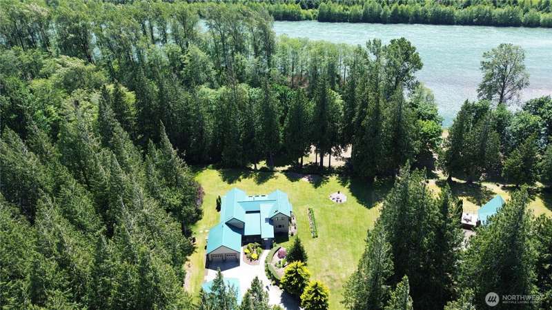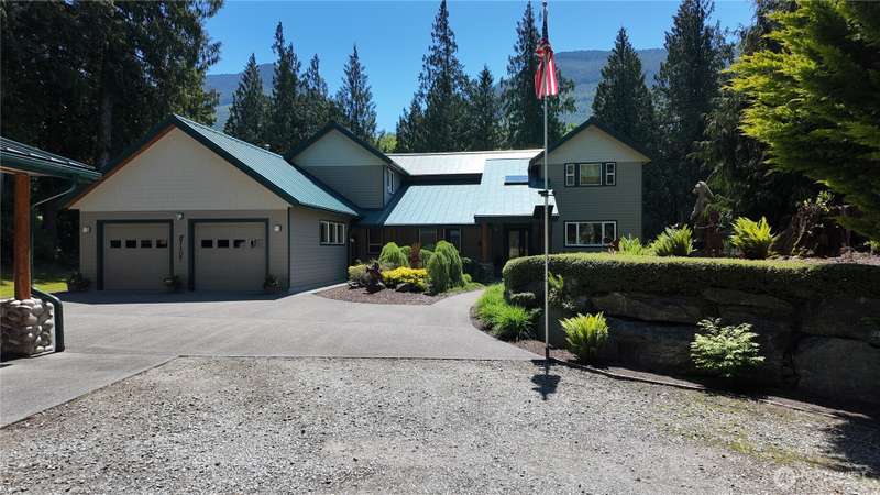 Stunning Skagit River Property! This spacious 4 bedroom, 3 bath home offers 3,904 sq ft of elegant living, including two en suite bedrooms. The large kitchen is perfect for entertaining, opening to a patio that overlooks the river. A grand gas fireplace anchors the living room, with large windows that bring in the beauty of nature. Enjoy comfort of heated bathroom floors, walk in showers, pellet stove and thoughtful touches throughout. Situated on 1.88 acres along the high bank, this property offers privacy, mountain views, and fishing from your backyard. The heated and insulated detached shop features a half bath, ideal for hobbies or projects. Additional highlights include plumbing for hot tub and generator, LeafGuard gutters, and more.