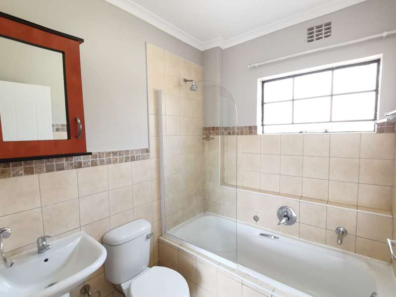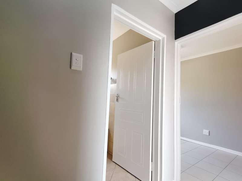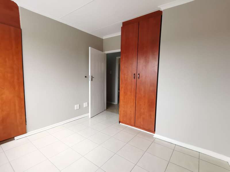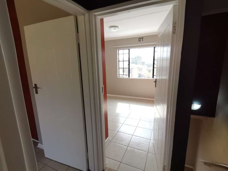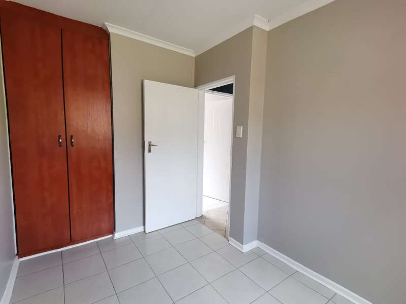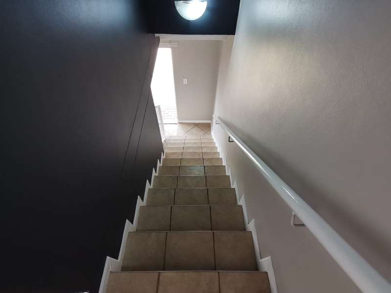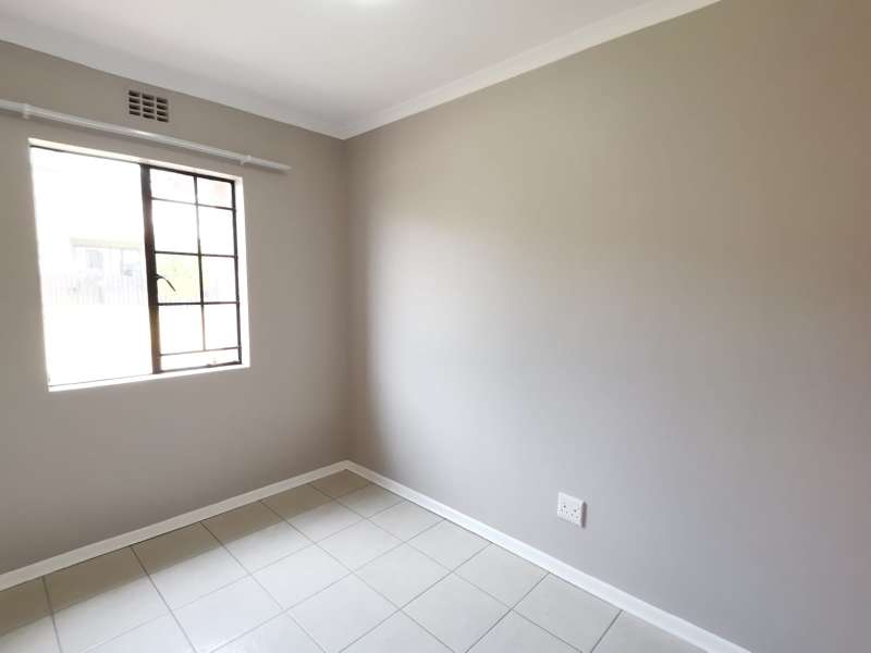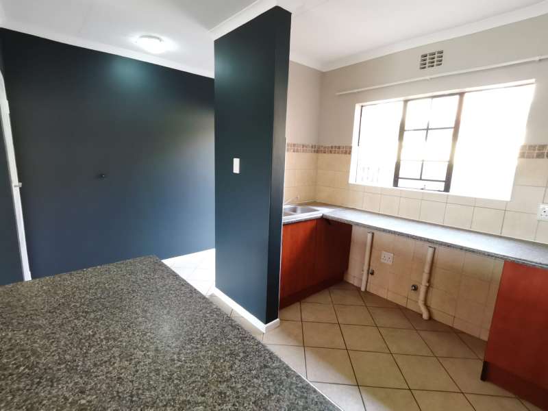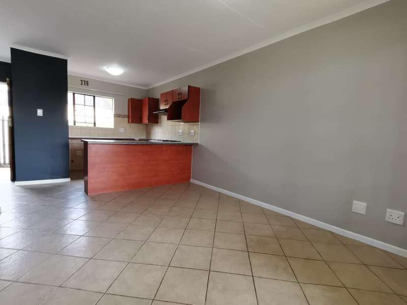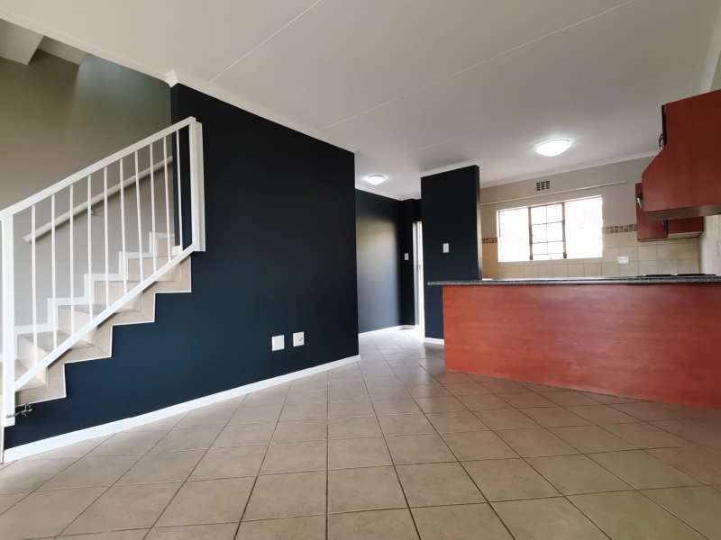 2 Bedroom townhouse in a safe and secure complex. 1 Bathroom with shower in bath. Storeroom under stairs. Open plan lounge and kitchen with built-in oven. Small garden, small dog allowed. Single carport. Pre-paid water and electricity.