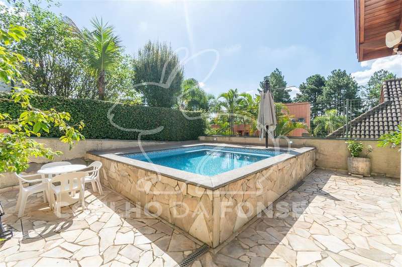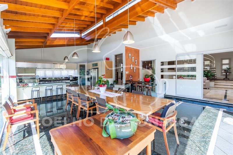 Casa em Condomínio no bairro Aldeia da Serra com 620m² área construída, 5 dormitório(s), 5 suíte(s), 6 vaga(s), 8 banheiro(s), piscina, escritório, ar condicionado, dep. de empregados, aquecedor solar, pé direito duplo.
