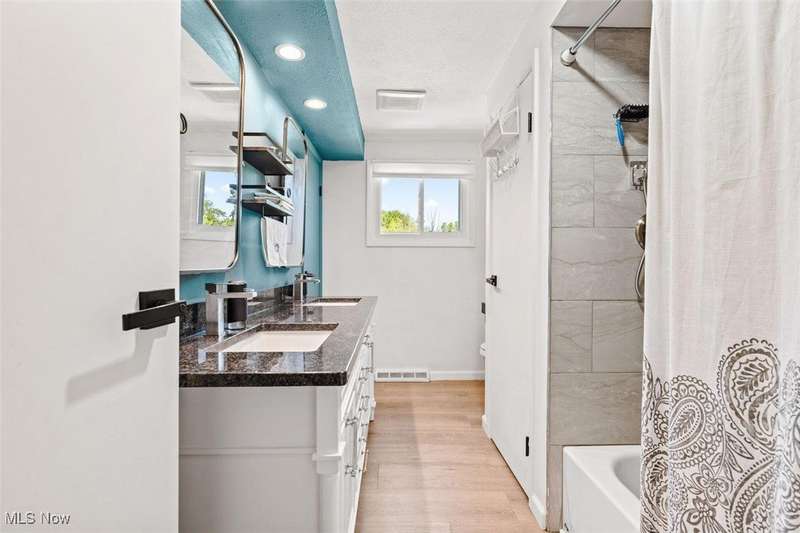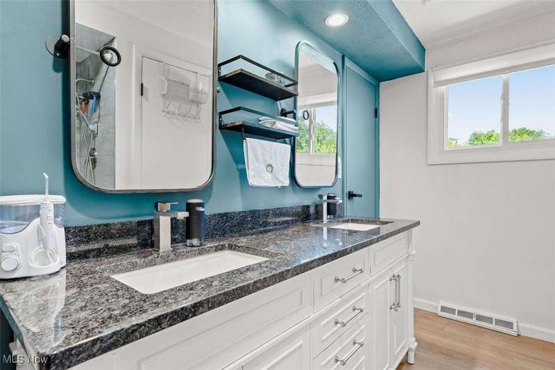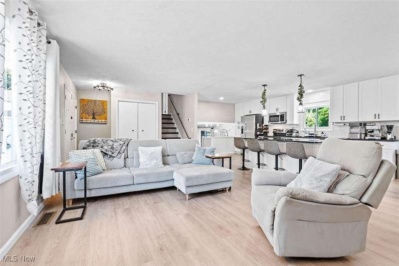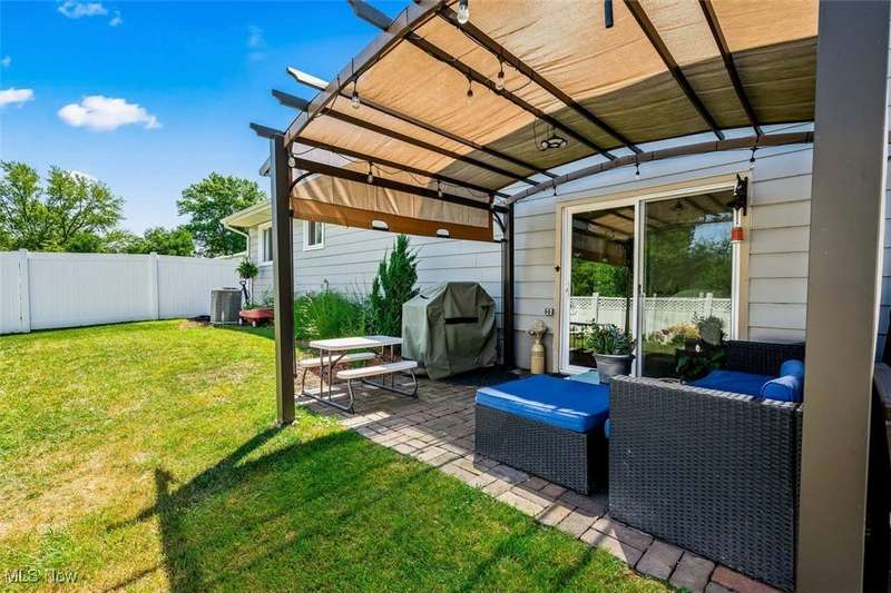 Combine glamour and practicality in this stunningly renovated split level home located in Brunswick Hills. The main level has been tastefully upgraded to an airy, open concept featuring an abundance of white cabinetry complemented by efficiency windows provide plenty of natural light throughout the home while contributing to lower energy costs. Neutral new flooring is featured throughout the entire home, including the second level which provides 3 spacious bedrooms with classy ceiling fixtures and a totally remodeled bathroom boasting vanity with double sinks and granite countertops, stylish tile bath and conveniently located linen closet. The lower level does not disappoint with a sophisticated wall to wall brick fireplace. new sliding glass patio door, additional capacious bedroom suite with tile shower and granite countertop. Efficiency remains consistent with a new furnace/air conditioner 2021, hot water tank, water softener 2024, sump pump and garage door with new opener. Brand new roof installed August 2025! Thought and convenience extend to the outdoors where relaxation can be enjoyed in the private expansive backyard on the new brick patio, while taking advantage of the fenced in area and new shed providing ample amounts of extra storage. Benefits continue in Brunswick Hills with NO CITY TAX!