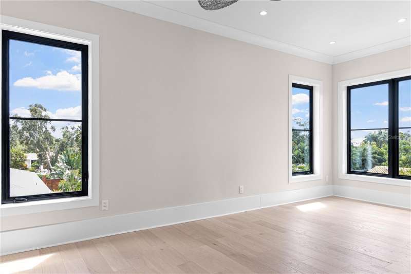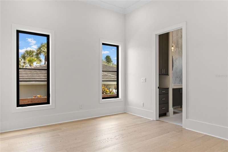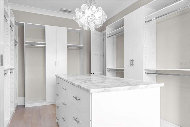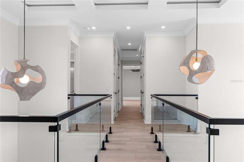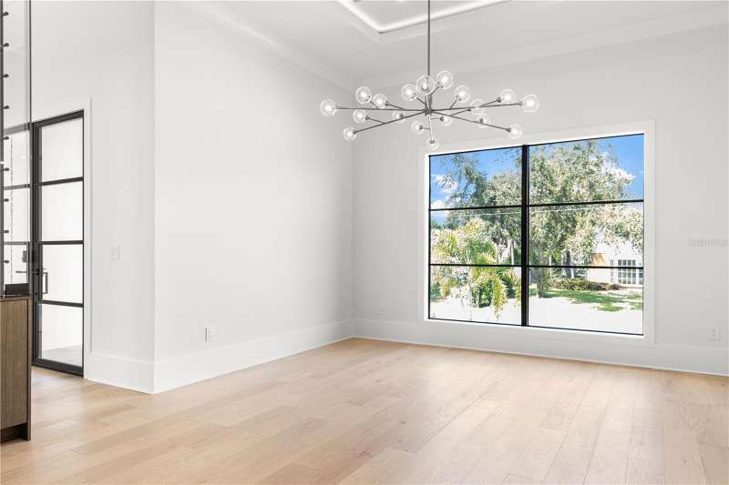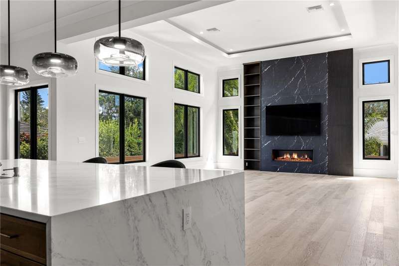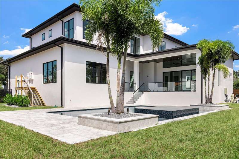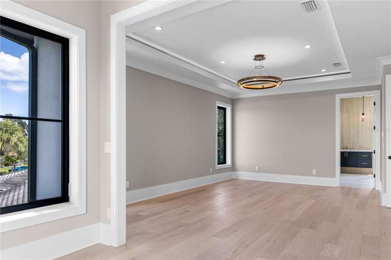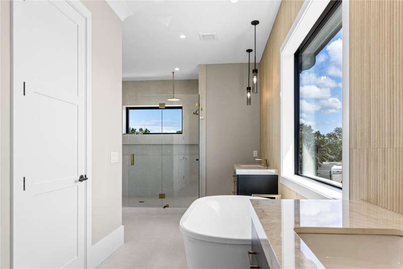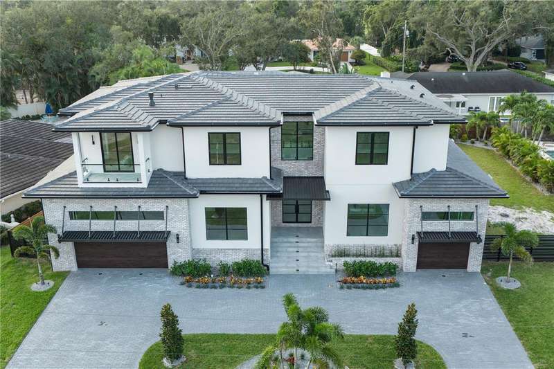 Step into elevated luxury living with this stunning 5-bedroom, 6.5-bath custom estate built for an executive family, featuring 12' ceilings on the first floor, 10' ceilings on the second, and a grand luxury design across over 5,483 sq ft of impeccably crafted living space. A dramatic 22-foot entry with overhead skybridge, oversized windows, and custom iron doors welcomes you, complemented by four Palecek Corsica pendant lights, backlit LED mini-tray grid, and marble-tiled bench area, creating a first impression that is truly unforgettable. Signature design elements, including custom decorative walls and high-end finishes throughout, set the tone for sophisticated living. The heart of the home is a gourmet kitchen showcase, complete with Wolf SubZero appliance package, built-in coffee maker, wall double oven with Wolf's convection system, custom hood, and a quartz waterfall island with integrated sitting area and oversized sink. Luxury skinny shaker cabinets (Waypoint Maple Almond) provide durable, elegant storage, while a butler's pantry includes an additional full-size refrigerator and wine cooler. A custom wine cabinet is seamlessly integrated into the dining room for effortless entertaining. The great room living space features soaring 14' ceilings, a custom built-in fireplace with fluted wood and large-format porcelain tile surround, and expansive sliders opening to the pool and outdoor entertaining areas. The executive study dazzles with water views, full-wall built-ins, and Arhaus Bronze Arrow accents, while the powder and pool baths are adorned with leathered porcelain, marble mosaic, oversized quartz countertops, and unique design elements for a refined experience. The luxurious owner's suite offers a sitting area with linear fireplace and water views, a spa-inspired bathroom with dual rain shower heads, floating cabinets, 6cm quartz countertops, and oversized linen closet. The master closet includes a full shelving system, island, and bench for seamless organization. Additional bedrooms and an oversized game room provide space for family and guests alike. Step outside to a resort-style backyard featuring a large, heated pool and spa with spillover waterfall, integration of foxtails, and upgraded outdoor kitchen by Artisan. The over 15,000 sq ft estate lot provides privacy and grandeur, with a metal and stained wood fence, lush landscape package, planters, salt-and-pepper granite accents, and ambient lighting. Outdoor living spaces include pool baths, frosted-glass doors for easy lanai access, and multiple entertaining zones for family and guests. Smart-home amenities include a Generac whole-home generator, hurricane-rated casement windows throughout, and pre-wired EV chargers. The oversized circular paver driveway with split 3-car garage completes the estate's convenience and luxury. Every detail, from high-end finishes to thoughtful living spaces, is designed for comfort, style, and sophisticated Florida living.