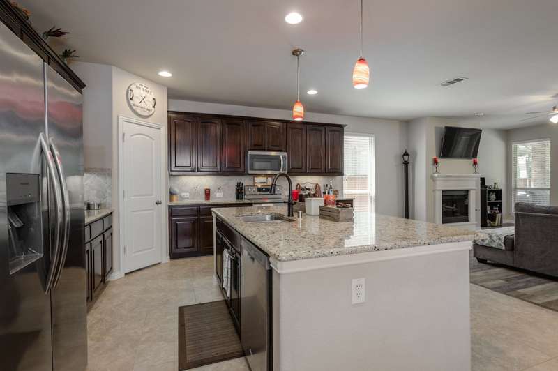 Welcome to your dream home in one of the most family-friendly neighborhoods around! This beautifully maintained 3-bedroom, 2.5-bath home is tucked away in a quiet cul-de-sac at the back of the community, offering both privacy and quick access to scenic nature trails.From the moment you step inside, pride of ownership is evident. Natural light from ample windows fills the open layout. Extra spaces include a cozy media room, a separate game room with a Juliet balcony, and large walk-in closets in all three bedrooms. For more storage, look for the expanded closet space under the stairs and three attic areas.The kitchen is a true heart-of-the-home, featuring stainless steel appliances, two walls of maple cabinets, and a large island with views of the backyard and lush trees.Retreat to the serene, first-floor primary suite with panoramic bay windows overlooking the backyard, perfect as a cozy reading nook or bonus work-from-home space. The primary bath features double vanities, a large glass-enclosed shower, and an oversized walk-in closet for ultimate comfort and convenience.Step outside to a covered back porch that overlooks a peaceful pasture, creating the perfect place to unwind. Additional features:Recent updates: new roof and gutters, freshly stained fence, newly painted garage and front door, recently cleaned grout and power-washed drivewaySeparate laundry room includes space for a full-size washer and dryer and hanging areaWater heater is in a closet in the 2-car garageHOA-maintained front yardSituated on a larger lot than most homes in this area, the property offers extra outdoor space and a sense of openness that's hard to find Enjoy the perks of this planned community: Club House, Community Pool, Curbs, Fishing, Fitness Center, Greenbelt, Jogging Path-Bike Path, Pickle Ball Court, Playground, Pool, Sidewalks, Tennis Court(s)Don't miss this special opportunity, schedule your showing today!