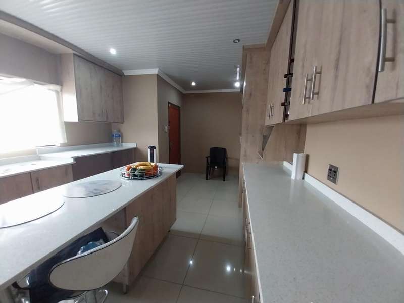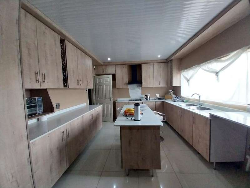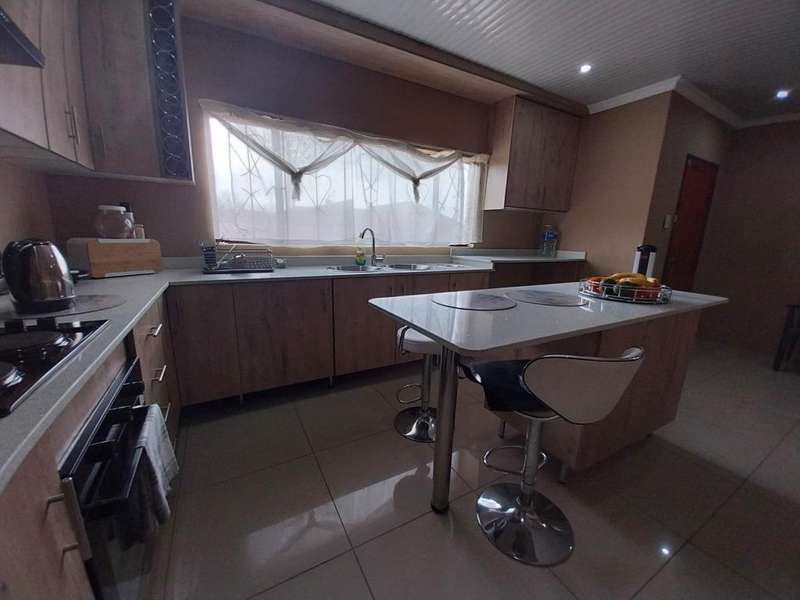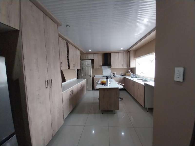 This newly renovated and well kept home consists of 4 bedrooms, 1 being for staff with its own bathroom. Consists of 3 full bathrooms and an en-suite. Has a well sized swimming pool and braai area which is perfect for gatherings and hosting. It is well situated next to restuarants and a shopping centre. This property offers a huge yard which is perfect for a family with children. It has built-ins that includes a TV stand which is one less worry for you! Do not let this wonderful newly renovated home pass you by!!!