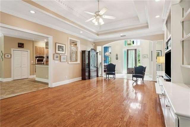 NEW ROOF 5/27/25 with transferable warranty!!! Situated on 5.05 beautifully landscaped acres behind a private, gated entrance, this well-maintained home boasts soaring 10–14 ft. ceilings, gleaming hardwood floors, built-in bookshelves, a fireplace and one floor living at it's finest! The layout features a formal dining room for holiday or everyday entertaining, a flex room that could be used as a game room, office or another living area. The spacious den with built-in bookshelves features a wood-burning fireplace with a gas starter for convenience. The kitchen is a chef’s dream with a 6-burner cooktop, updated granite countertops, maple cabinetry, Fischer Paykel dishwasher, a serving bar, and a generous breakfast area with an attached, cozy screened-in patio overlooking the serene backyard. The large primary suite boasts soaring trey ceilings, hardwood floors, a private attached reading nook and a beautifully remodeled, spa-like bathroom with a soaking tub, dual sinks and closets with a separate shower. There are two additional bedrooms each with attached bathrooms with their own vanity and sinks for added convenience. A bonus 40x40 heated and cooled metal workshop building has an oversized garage door, bathroom, and nothing but possibilities. Store your equipment, make room for a mother-in-law suite or turn it into an at-home gym and there would still be plenty of room for a workshop! There is a whole-house generator, a 500-gallon underground propane tank, and a fully fenced yard for privacy and security. Enjoy peaceful moments outdoors in the gazebo area, by the dock on a shared pond, or walking among 43 crepe myrtle trees, camellia bushes, and fruit-bearing fig trees. When driving on to the property, it is evident this is a rare property! Seize the opportunity to be the next owner of this well-maintained and well-cared for Folsom gem! Two new hot water heaters just installed 10/25.