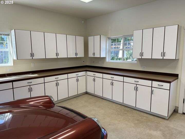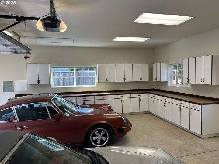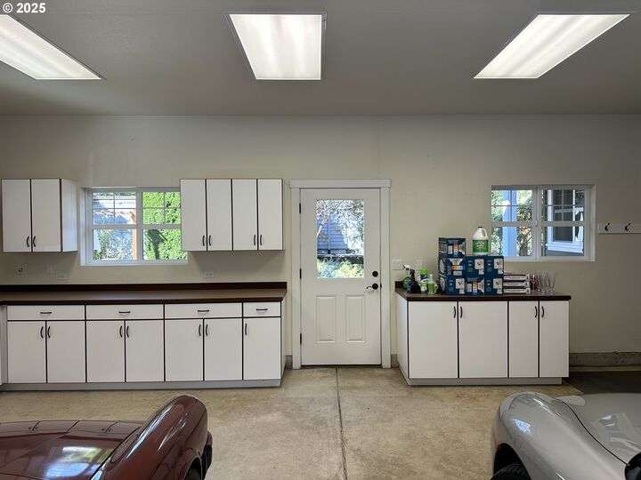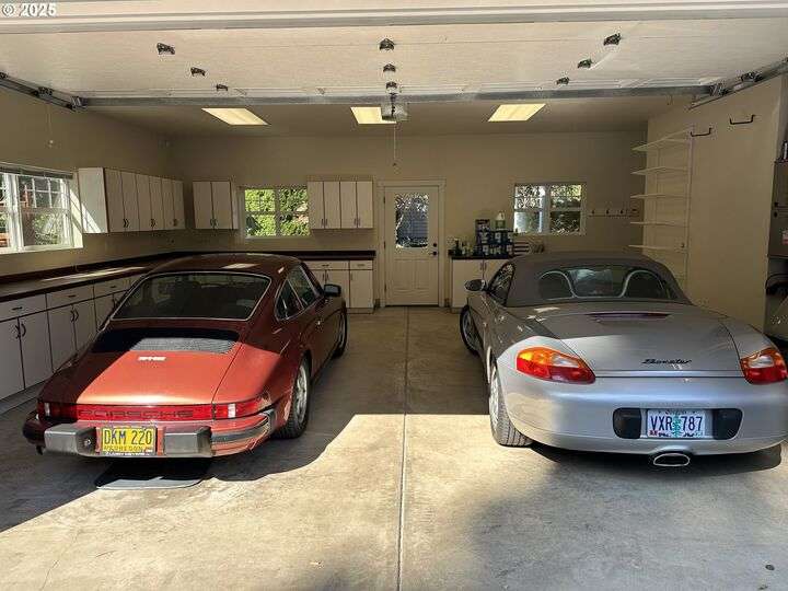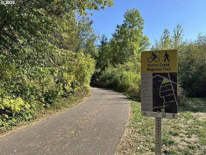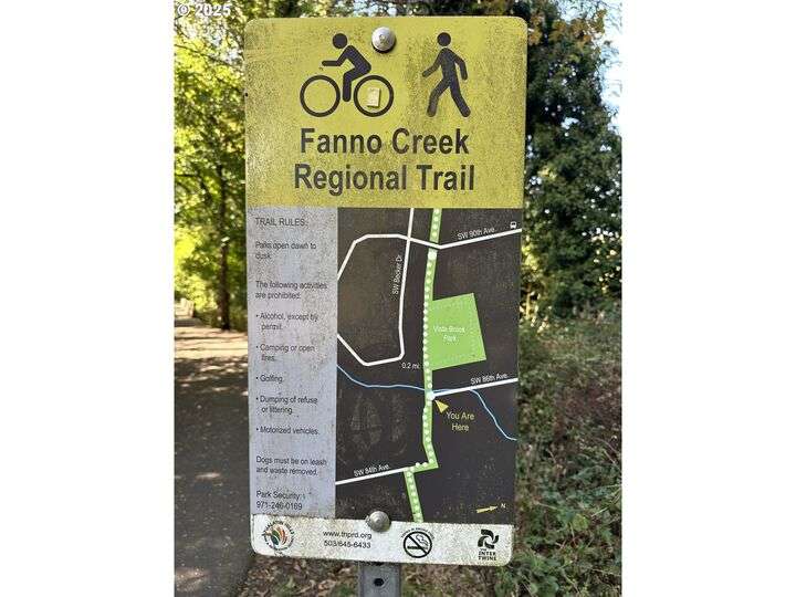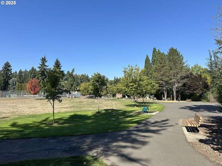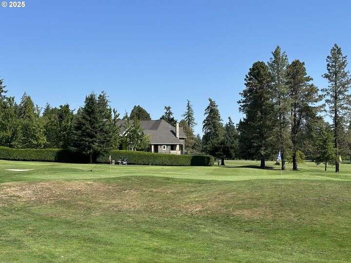 Rare lifestyle opportunity with low Washington County property taxes in west Portland! Located adjacent to the Portland Golf Club with direct fairway views, this home sits on a quiet street just 23 steps from your front door to a private gate onto the golf course. Only half a block to Vista Brook Park and the Fanno Creek Bike Trail. Convenient access to Nike, Intel, OHSU, Jesuit, OES, the Multnomah Athletic Club, and downtown Portland. Custom built for the current owner, the house offers a main floor primary suite plus an upstairs guest suite with a dedicated bathroom. The oversized garage is fully finished, with windows on three sides and two walls of cabinetry with abundant countertops—ideal for car enthusiasts or homeowners seeking expanded living space. The covered porch, crafted with Ipe decking, wraps the entire front of the house to the back door. Outdoor amenities include a spacious flagstone patio perfect for entertaining, professionally designed landscaping with brick walkways, raised beds for gardening and RV parking ideal for that adventure van. Recent HVAC, water heater, and kitchen appliances. The detached garden shed can be easily converted into a custom golf cart garage. Floorplan available upon request.