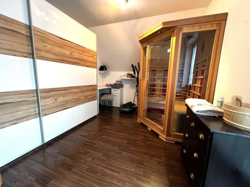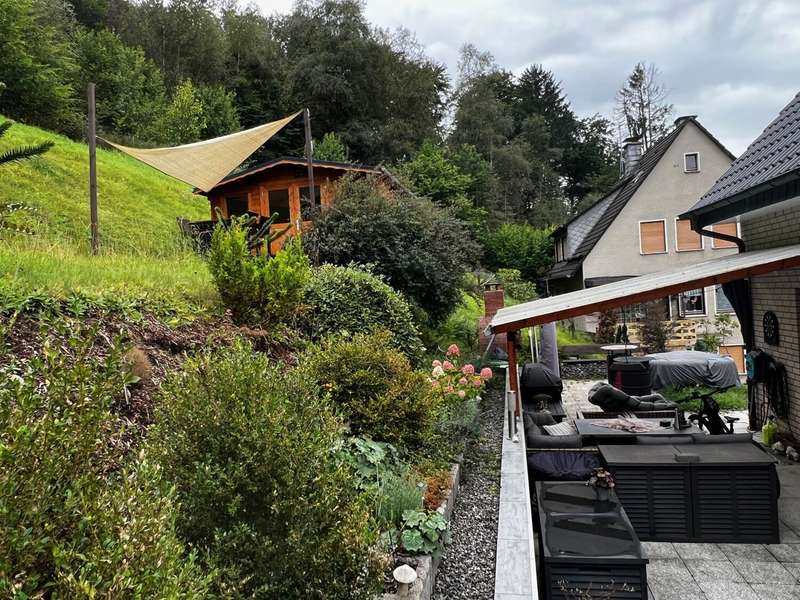 For sale is an extremely spacious and well-maintained detached house with granny apartment in a quiet location on the edge of the forest in Altena-Dahle. You reach the property from the street via a few steps. Both apartments have separate entrances. The right-hand entrance door leads to the granny apartment in the basement of the house. Here you have approx. 53m² of living space at your disposal. This comprises 2 rooms, a living area with kitchenette, a bathroom and a storage room. The living room and bedroom are fitted with laminate flooring, the remaining rooms are tiled. The fitted kitchen shown in the pictures is the property of the tenant and is not for sale. The main apartment can be reached via a small hallway and the connecting door. The main apartment has approx. 130m² of living space, which is spread over the first floor and second floor. Adjacent to the entrance area on the ground floor is a storage room / boiler room, which has connections for a washing machine and dryer. This can be shared with the residents of the granny apartment. A staircase leads to the first floor. The spacious staircase and the hallway / hallway can be conveniently used as a checkroom. On the first floor, you enter the spacious living/dining area. Here you will find a large fitted kitchen with a high-quality cooking island as well as the cozy living area, which is equipped with both underfloor heating and an open fireplace. The wood-burning stove shown in the pictures is the property of the tenant and is not for sale. The living area impresses with floor-to-ceiling windows and offers access to the approx. 43m² terrace. Here you can create your own personal retreat and unwind. A guest WC and a separate office complete the space on the first floor. The stairs take you to the upper floor. There is plenty of space here too: three rooms are available for individual use. There is a bathroom with daylight windows, underfloor heating, whirlpool bath and shower. One of the bedrooms has a separate dressing room. If you need more space, this can also be provided: the attic offers you an additional expansion reserve of approx. 30m². Electricity and heating connections are already available there. A double garage with 2 electric Hörmann roller doors completes the property offer! We would be happy to arrange personal on-site appointments for you, and our colleagues at VON POLL FINANCE can also offer customized financing solutions. Please contact Bärbel Retzlaff on 02371 / 35 19 449. Your team from POLL Immobilien Iserlohn & Lüdenscheid